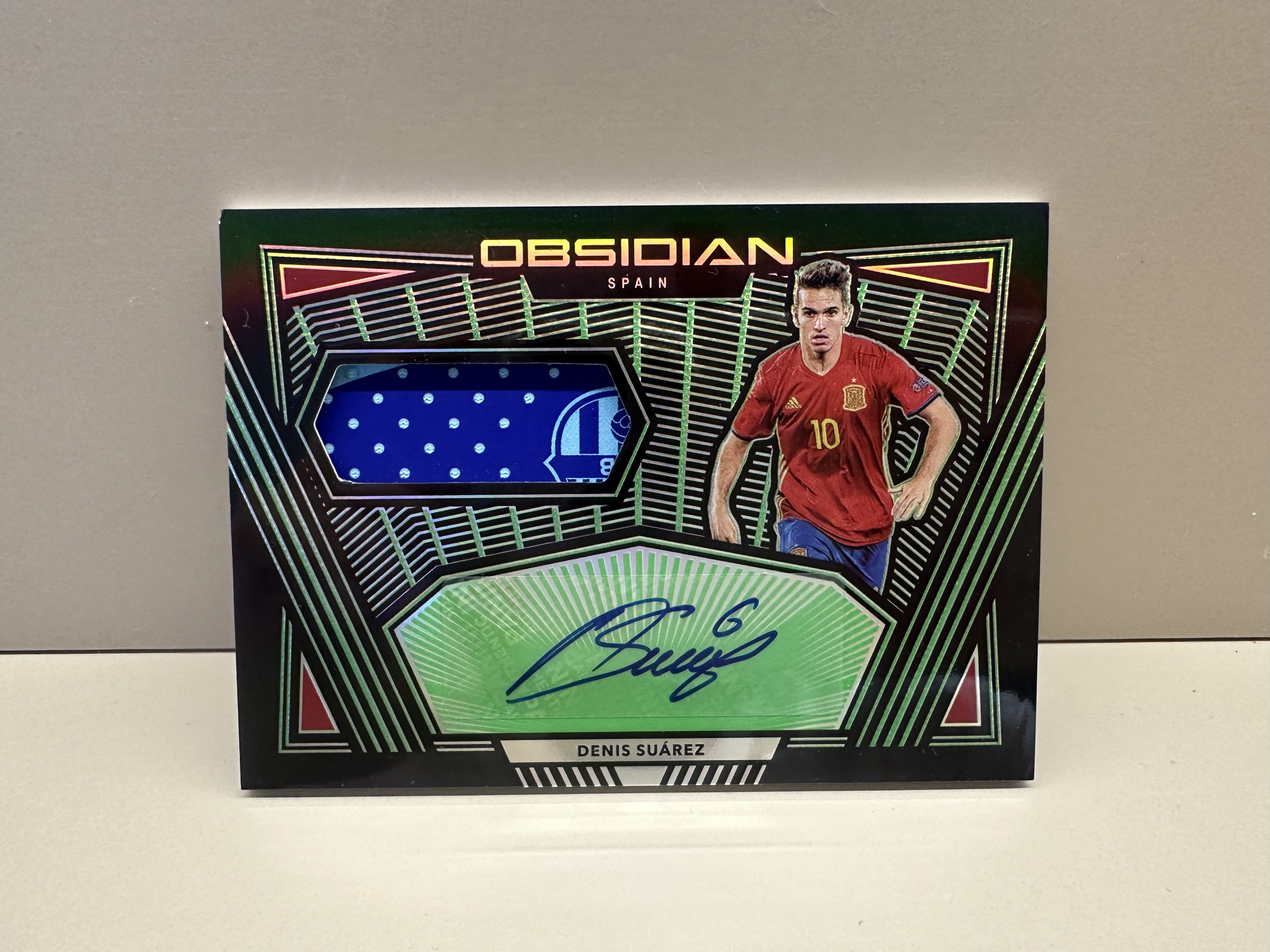 2019-20 Panini Obsidian Denis Suárez 元年 黑曜石 丹尼斯 苏亚雷斯 西班牙 绿折 25编 巴萨 巴塞罗那 球衣 物料 签字 队徽 暴力切割 瑕疵如图