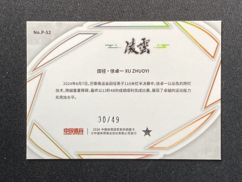 【关于卡品】:①出价即认同品相详情及拍卖规则,概不退换;②签字墨迹及卡片品相均如图,请看清楚细节图再拍,图片很清楚,需要细节图请提前咨询站内信或VX;③折射系列经常会有一道横线印刷线是出品印刷问题,不属于卡品残次范畴。国宝、IMM、NOIR等厚卡有轻微白边白角属于正常现象!镜面系列等卡面轻印划痕、印刷自带痕迹或覆膜不平起泡等卡片自身问题均为通行品。老卡有白边白角属于正常卡品。评级卡砖上的划痕和破损以及评级砖内的卡有卡品问题一律不属于品相问题。PZ、OP等各种折射系列表面的轻微划痕为正常卡品。关于以上卡品问题请确认无误再出价,介意者勿拍,要评级追求金标和10分者请直接购买评级卡。④快递过程中如出现包装破损、暴力变形、遗失等问题,请自行联系顺丰客服处理理赔,提供购买订单记录和物流记录给顺丰即可,如有高价卡有保价需求,请主动联系我们!⑤所有多卡打包lots标均不保卡品,品控和艺术家勿扰,感谢理解!【任何疑问请添加咨询VX:cglgzh01】