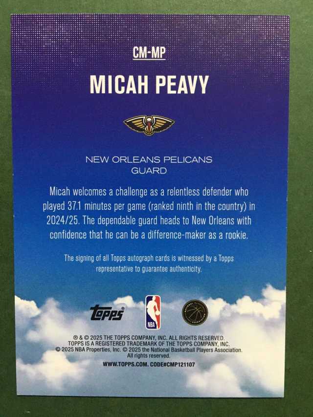 2025 Topps Flagship Micah Peavy RC 元年 新秀 鹈鹕 迈卡 皮维 签字 Contemporary Marks 哈珀 弗拉格同届 锡安队友 未来可期 卡品如图#叔