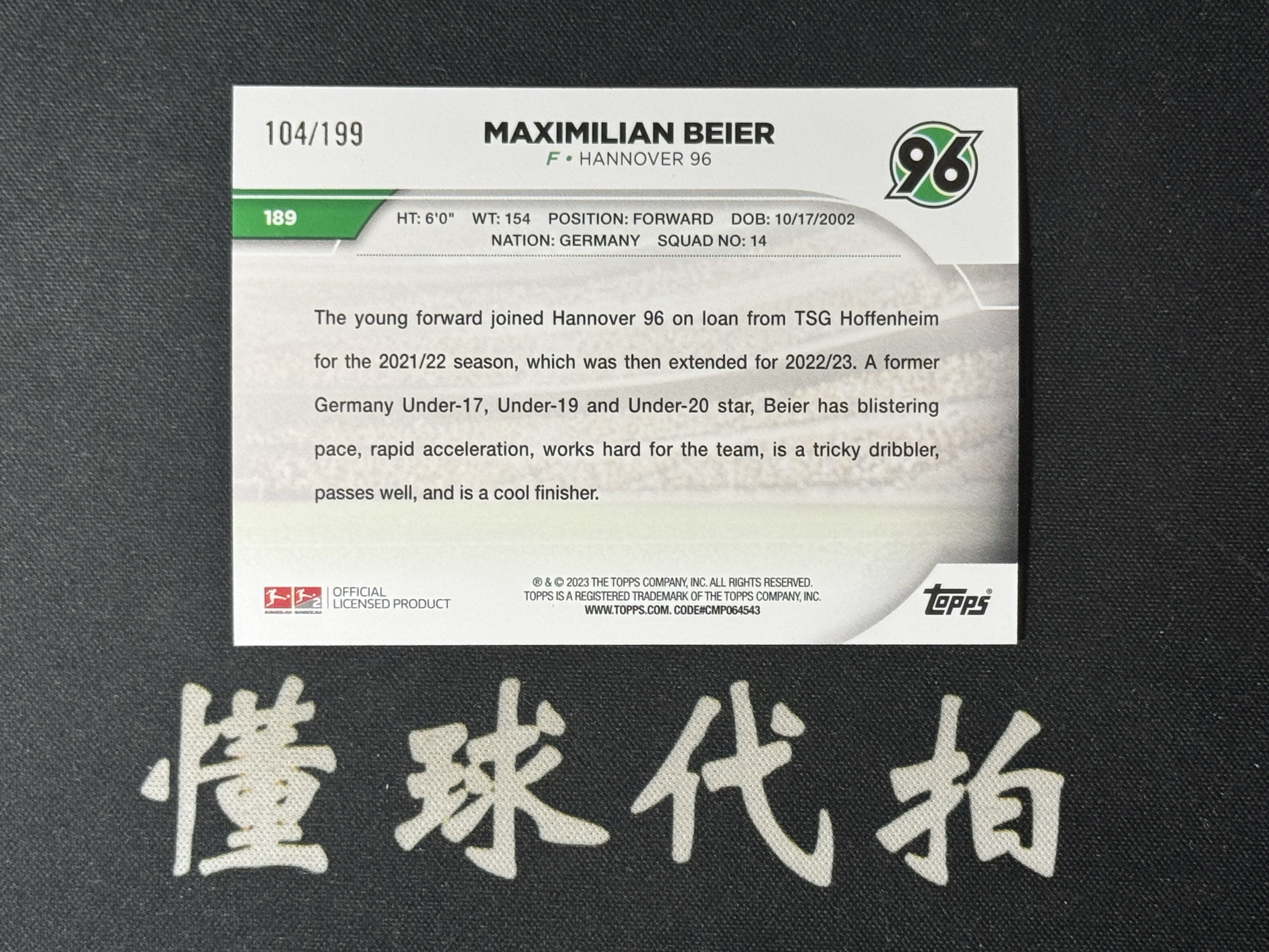 【懂球代拍】2022-23 topps 德甲碧玉 限量 199编 RC新秀 MAXIMILIAN BEIER拜尔 汉诺威96 多特 祥云折射 值得收藏 DQ077C 043