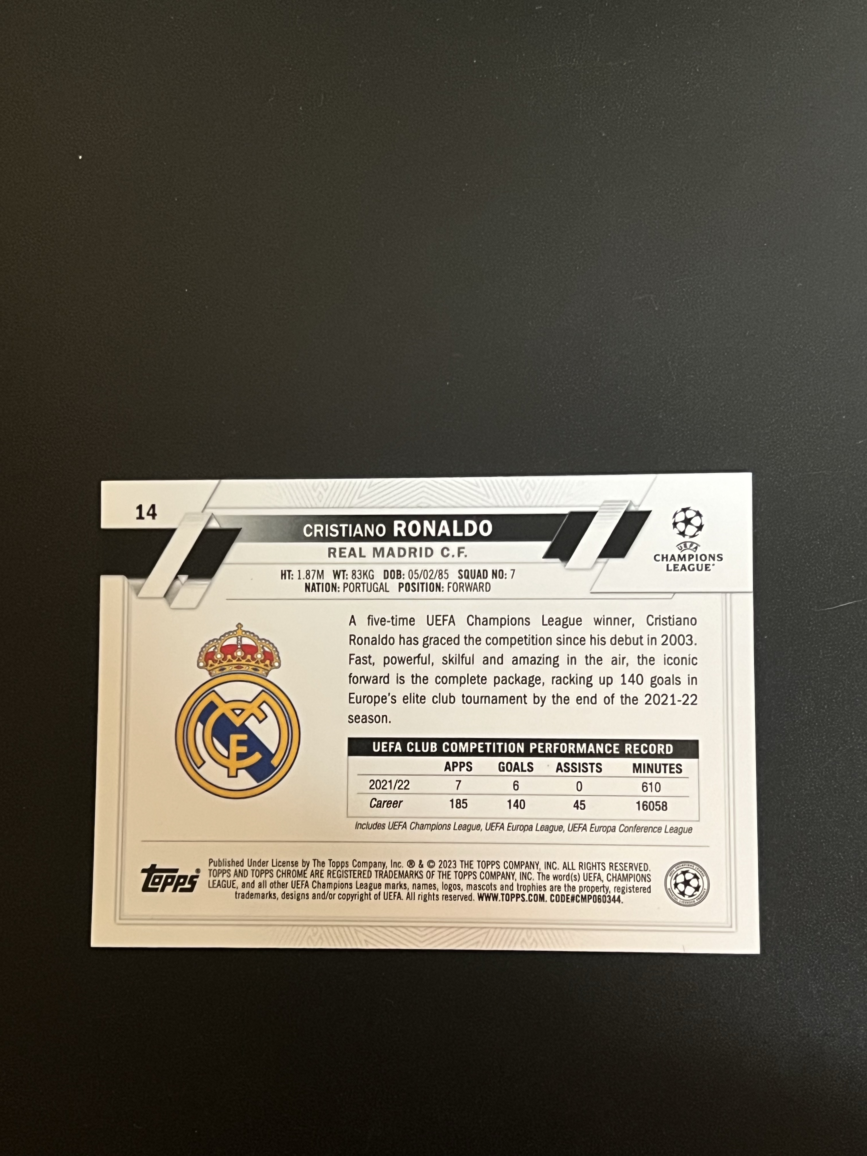 2022-23 Topps Sapphire Chrome Cristiano Ronaldo C罗 罗纳尔多 总裁 葡萄牙 皇马 欧冠 蓝宝石 蓝碎冰折 折射 变化版 大比例SP 收藏必备
