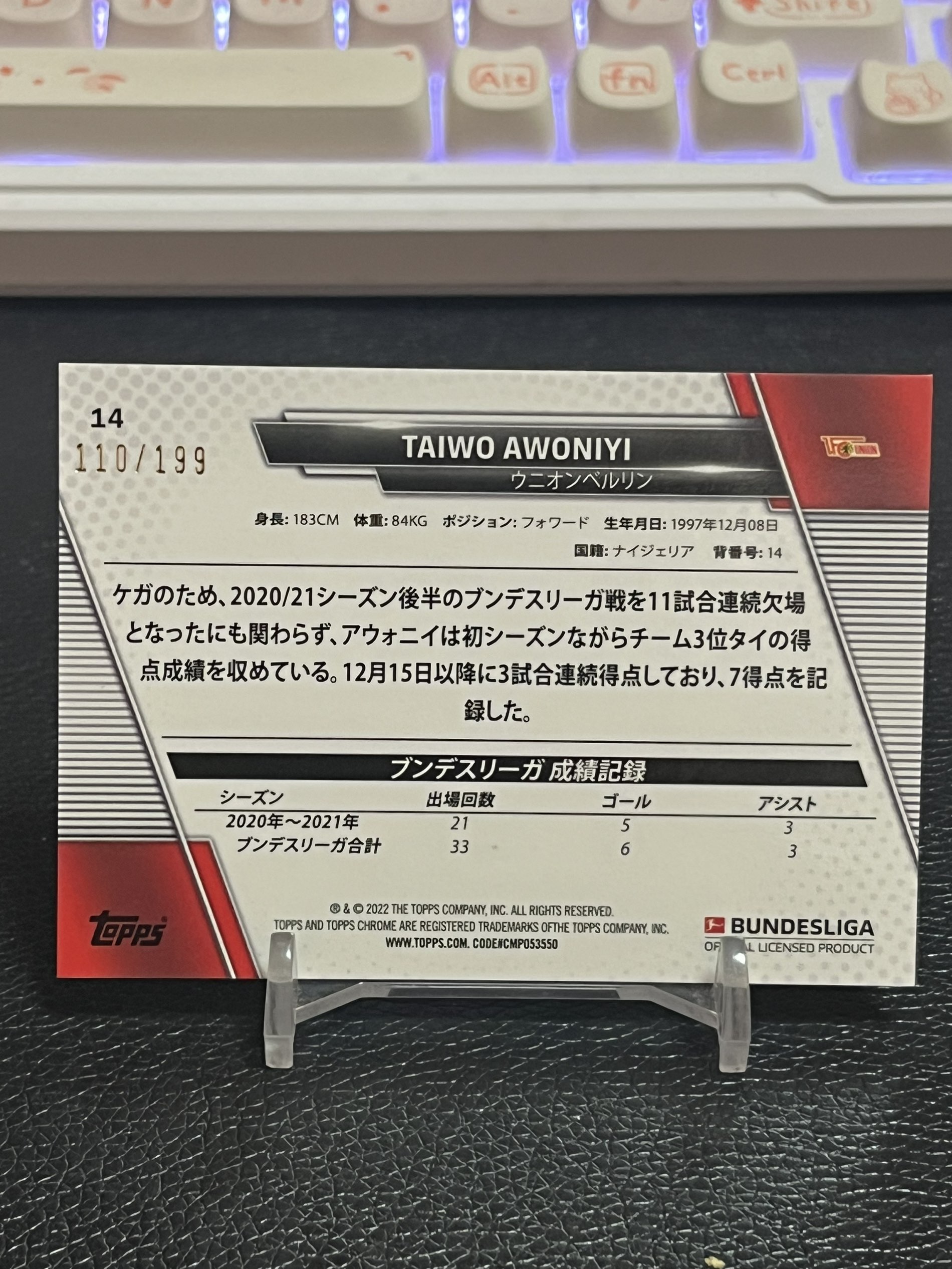 【浩行拍卖 截标预付82%】2022 topps taiwo awoniyi 德甲 柏林联合 塔伊沃 阿沃尼伊 RC 新秀 青mojo折 折射 110/199编 专收必备「功法」1111G02兿祺