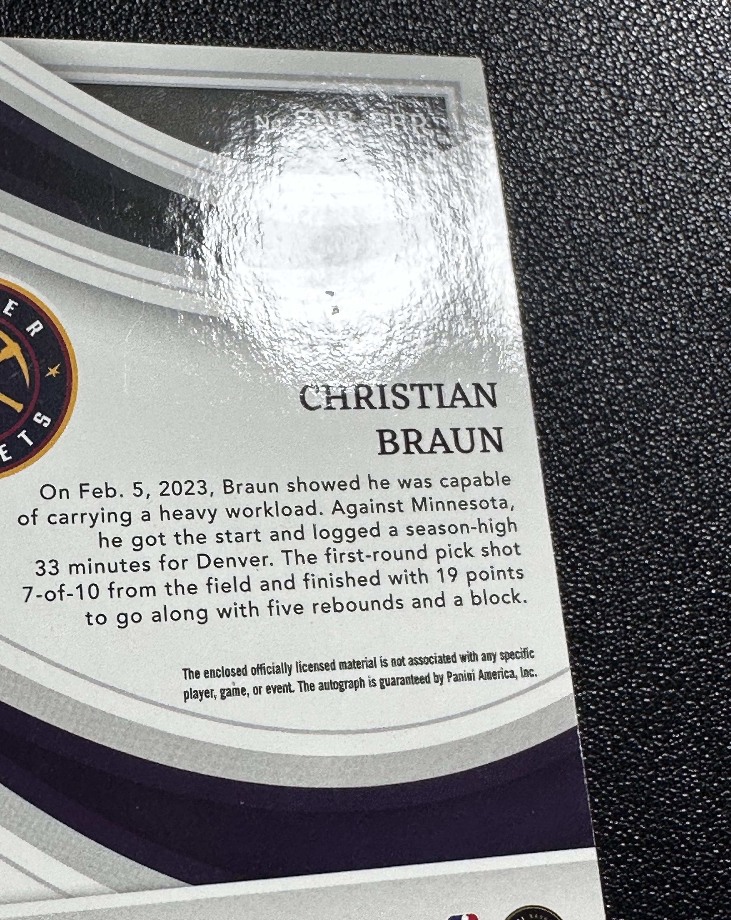 【一支鼎】2022-23 Panini Immaculate Christian Braun 新秀RC 掘金 布劳恩 25编 球鞋签字 鞋底切割 暴力切割 瑕疵如图【KBG】