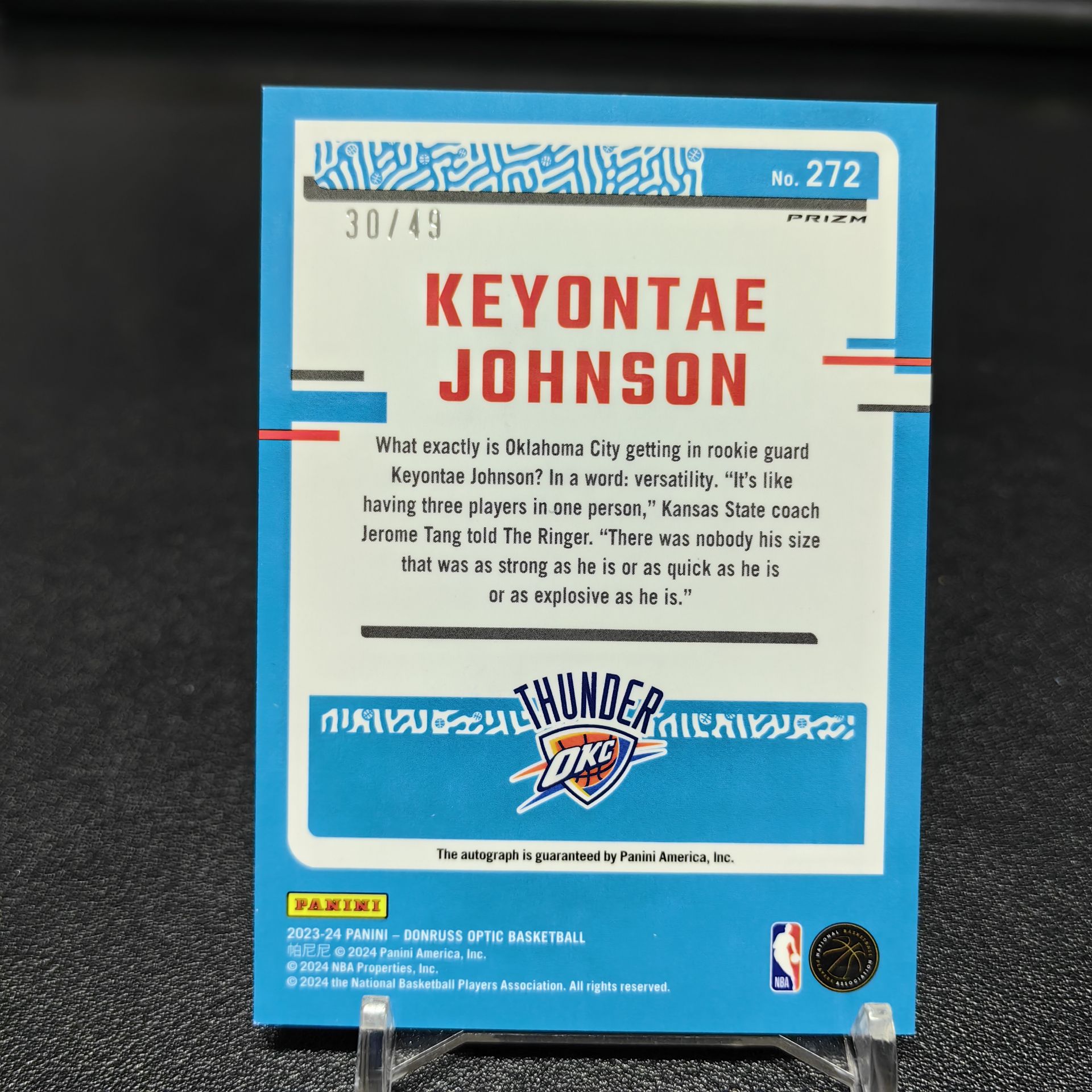 【浩行拍卖 截标预付82%】2023-24 Panini Donruss Optic Keyontae Johnson 杜蕾斯 雷霆 基昂泰 约翰逊 新秀 RC 签字 卡签 蓝折 折射 30/49编 瑕疵看图「绵薯」1111C02龘