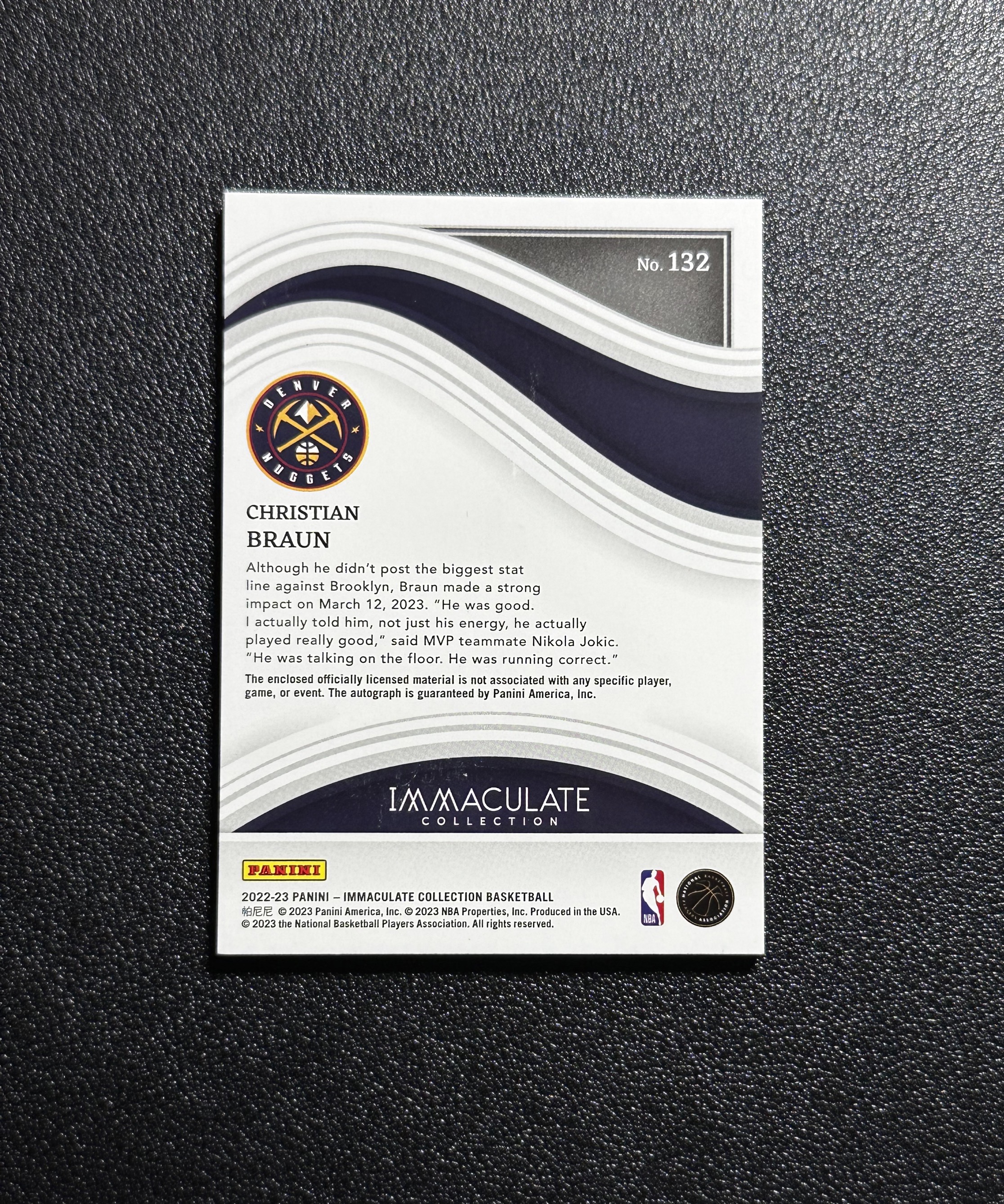 【一支鼎】2022-23 Panini Immaculate Christian Braun 新秀RC 掘金 布劳恩 99编 patch 签字 RPA 瑕疵如图【KBG】