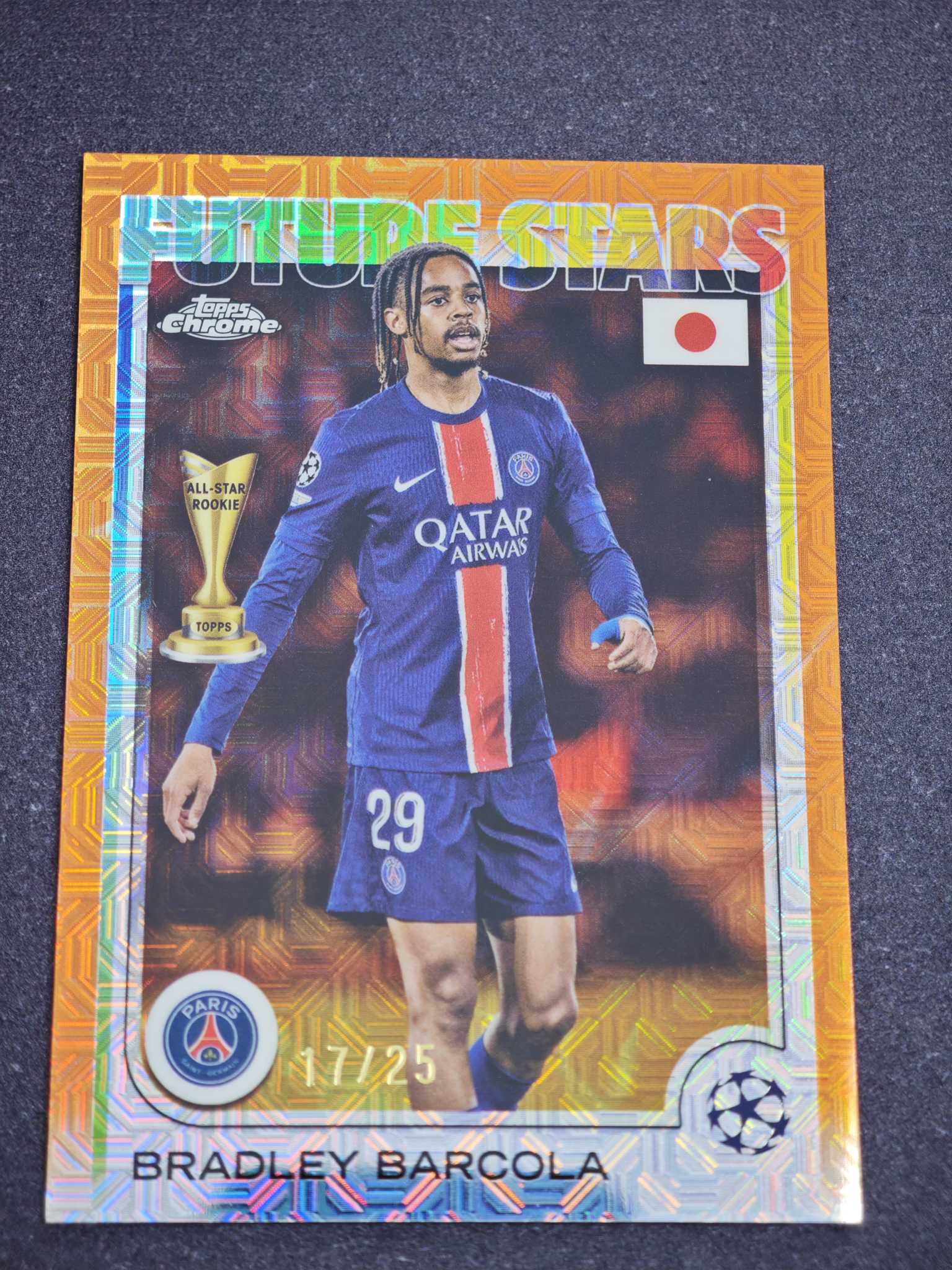 2024-25 Topps Chrome Bradley Barcola 【小灰机】巴尔克拉 欧战 欧冠樱花盒 巴黎圣日耳曼 17/25编 橙mojo折 卡品瑕疵如图 lion