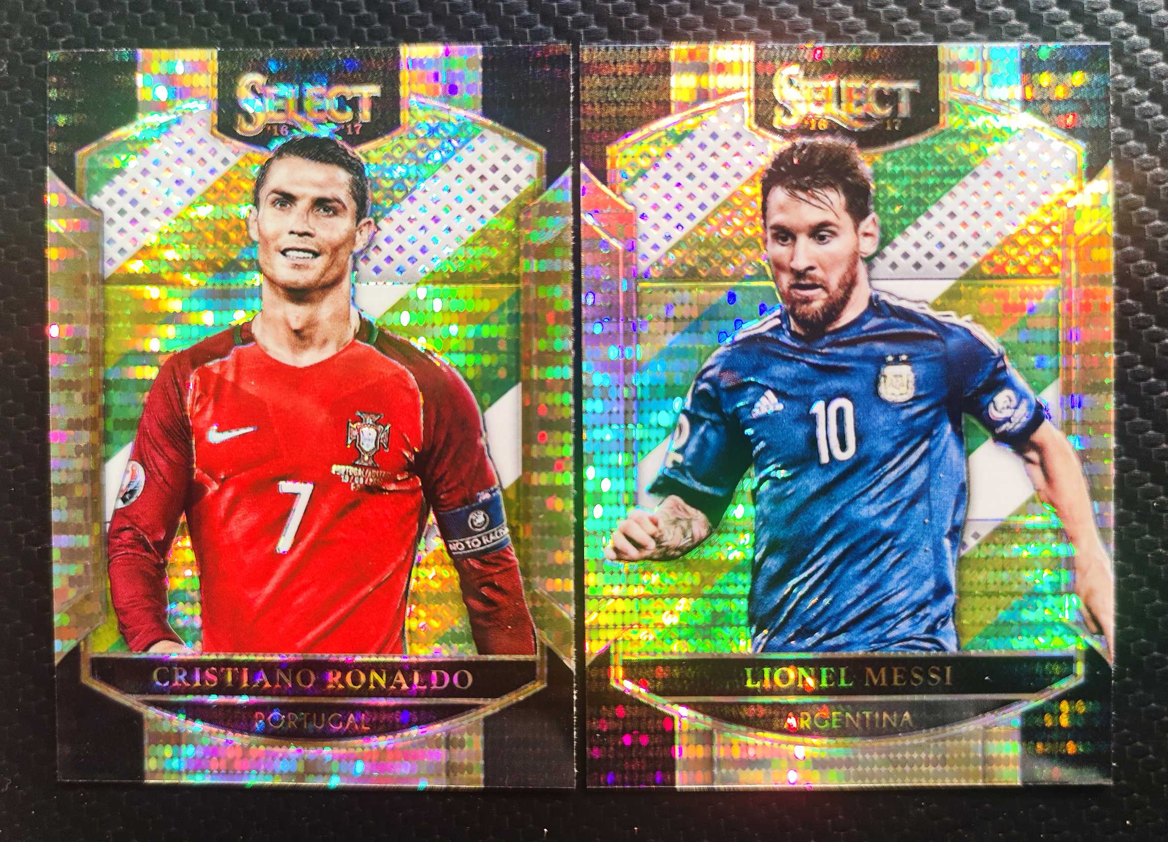 2016-17 Panini Select Cristiano Ronaldo 世界杯 葡萄牙 曼联 皇马 c罗 阿根廷 巴萨 梅西 三色 脉冲 2张 打包 lot 稀有老卡 不保卡品 卡品见图阅读描述