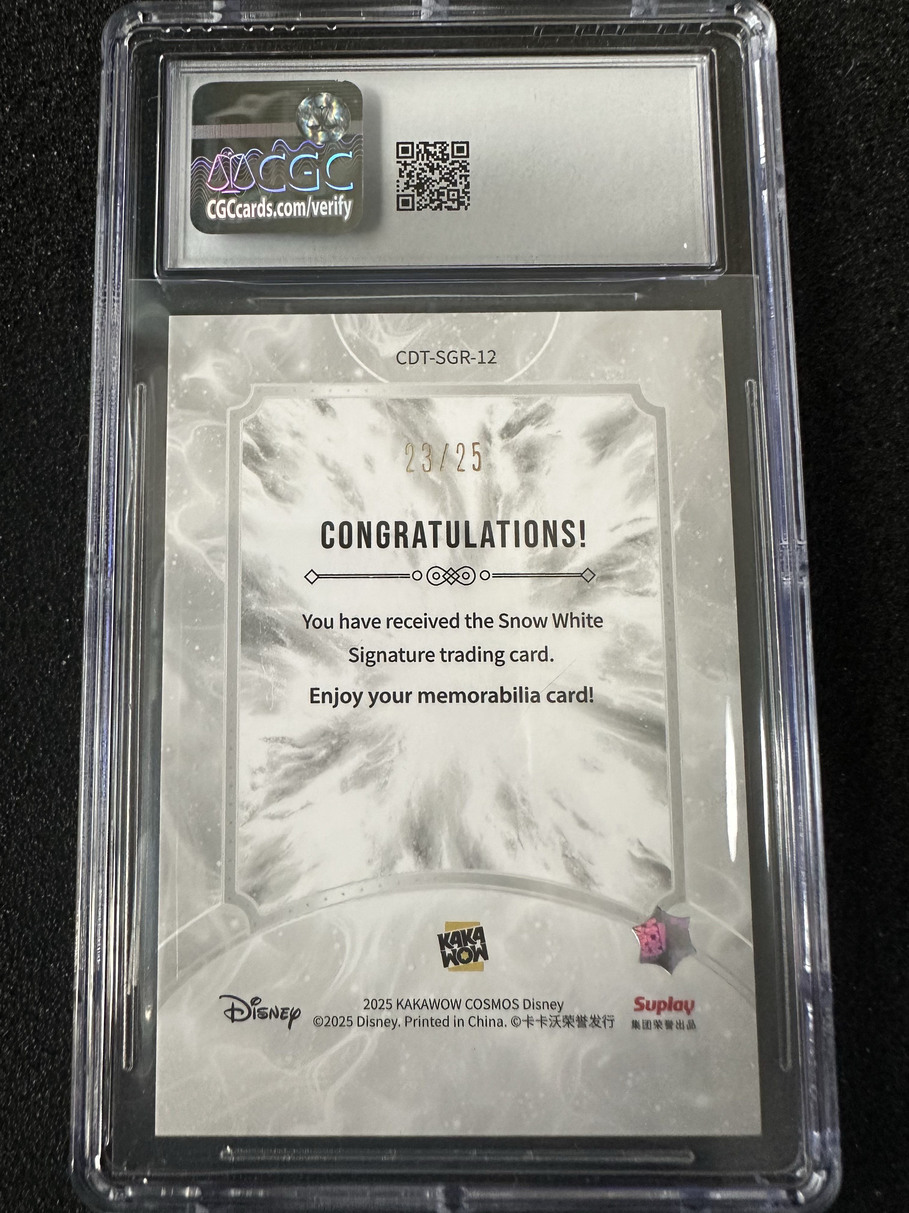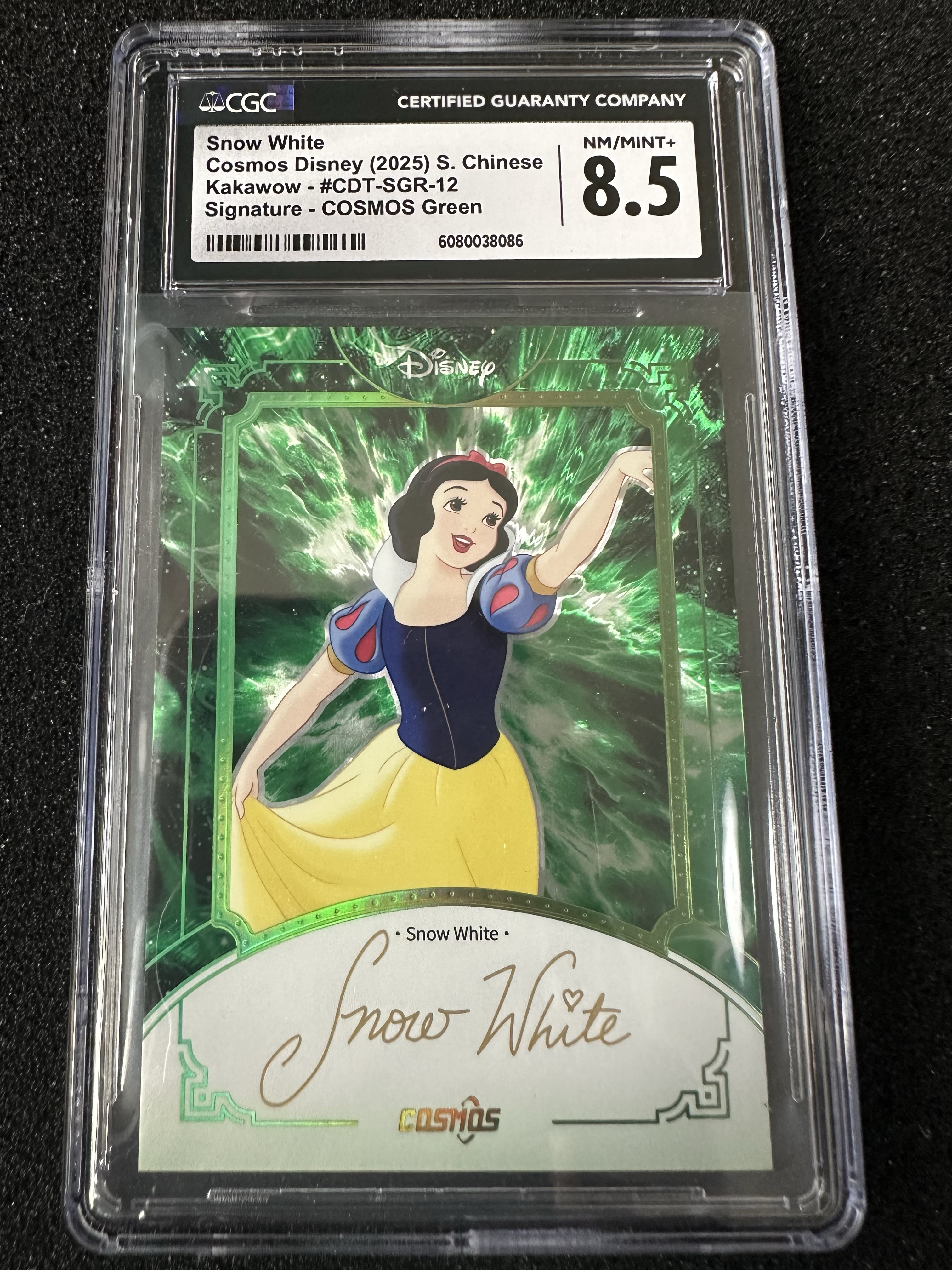 2025 KAKAWOW COSMOS Disney 卡卡沃 迪士尼系列收藏卡 /25编 绿折 单签 签字 印签 白雪公主 Snow white 评级卡 CGC8.5分