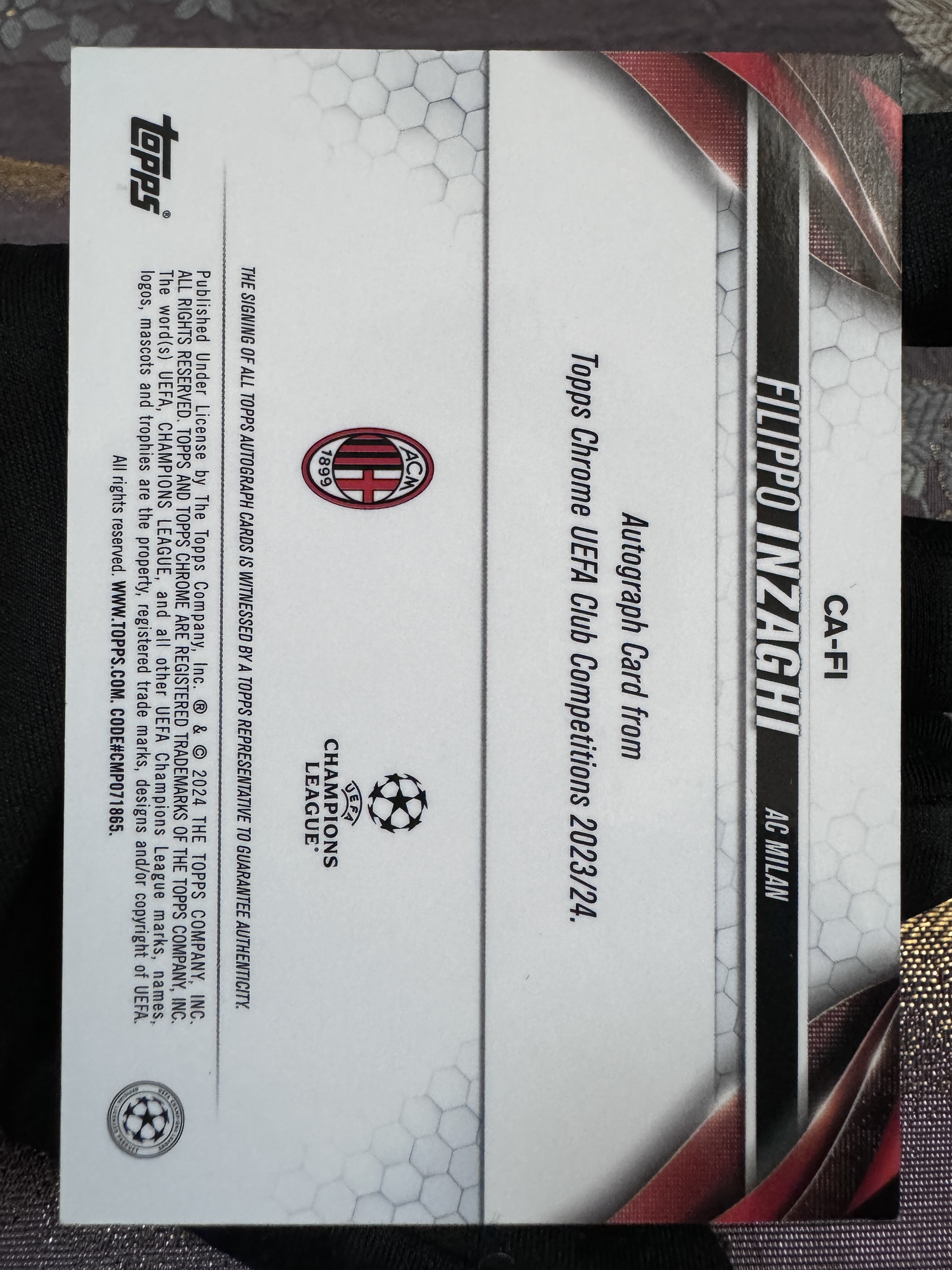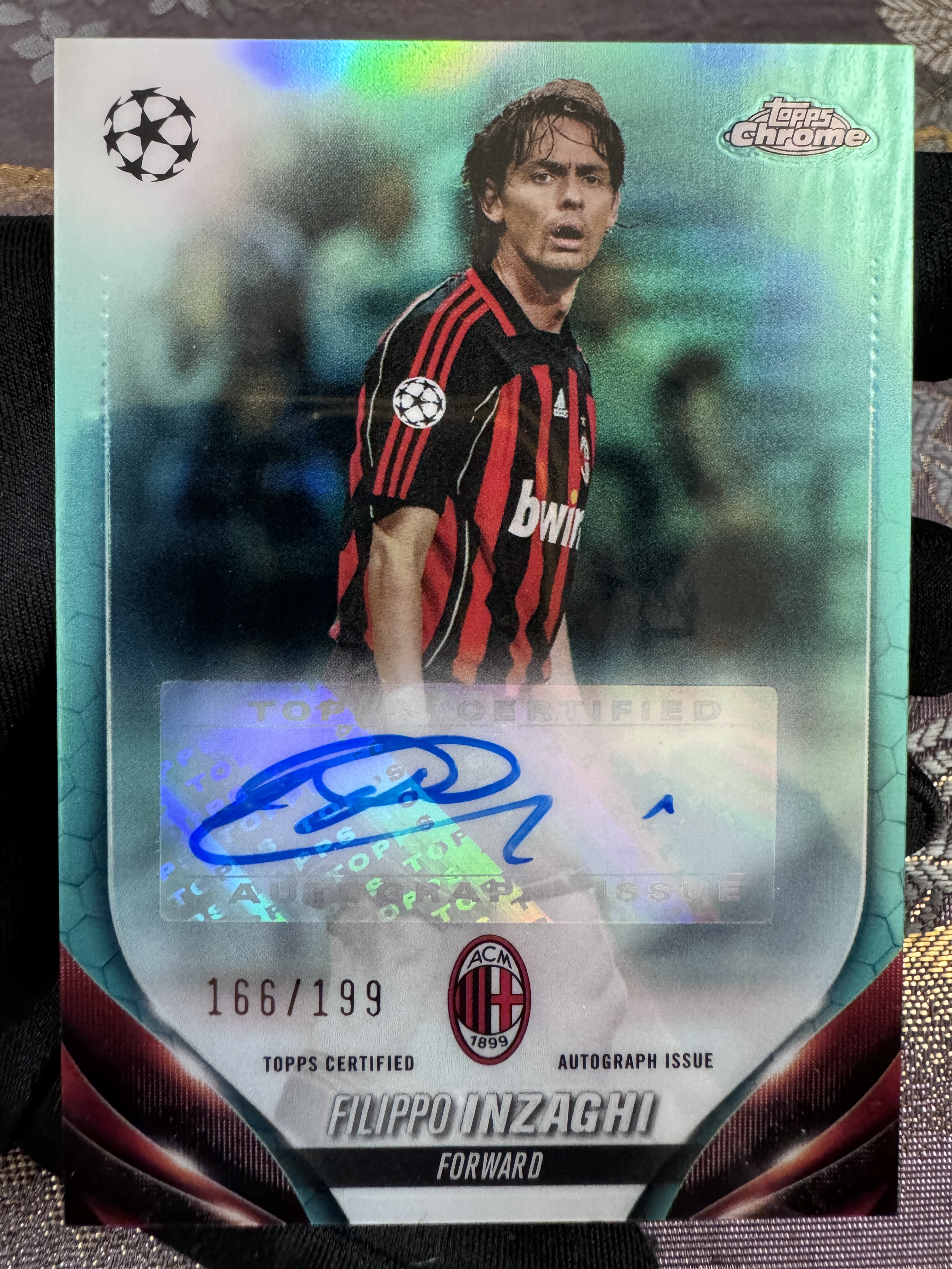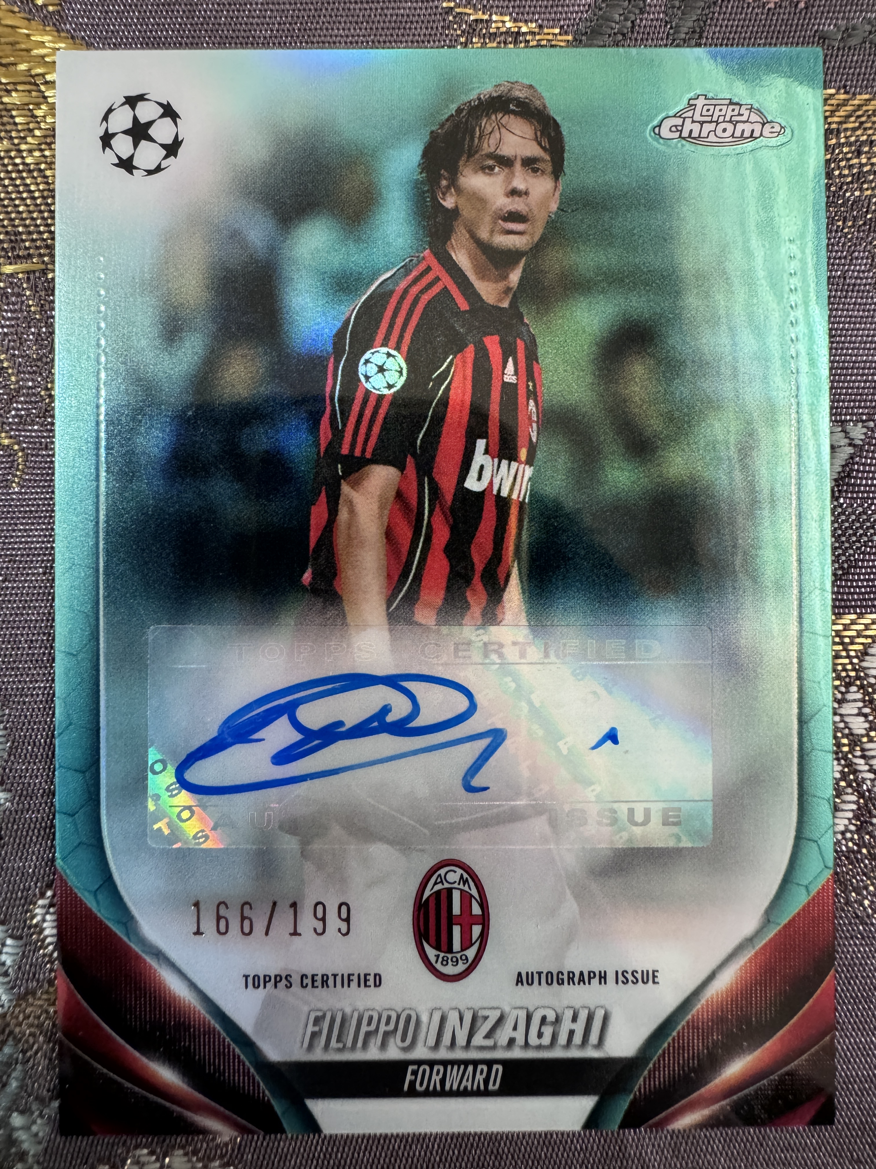 2024 Topps Chrome Filippo Inzaghi 欧冠 chrome AC米兰 意大利 超级巨星 九爷 菲利波 因扎吉 传奇 大师 绿折签 166/199编 签字 完美墨迹 实卡精美