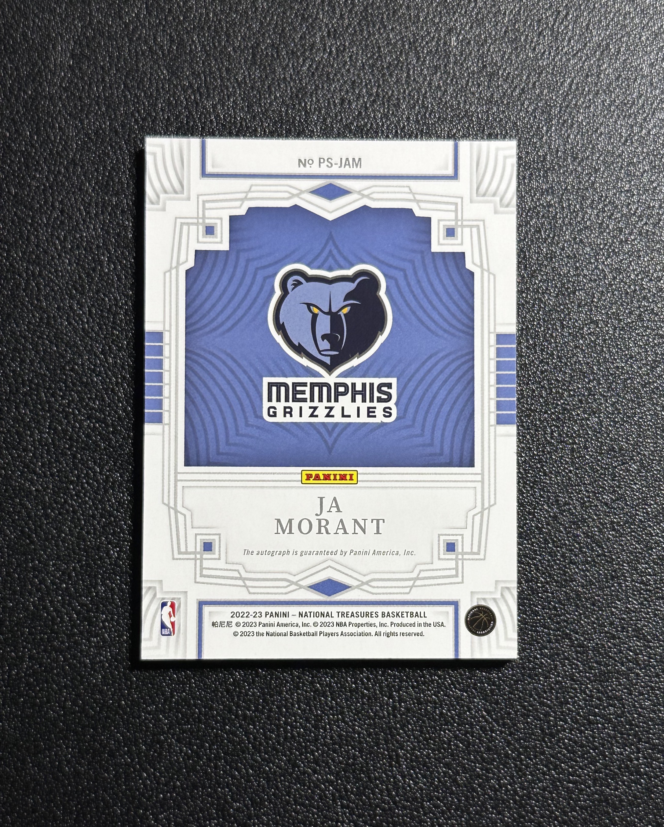 【一支鼎】2022-23 Panini National Treasures Ja Morant 国宝 灰熊 莫兰特 49编 签字 卡签【KBG】