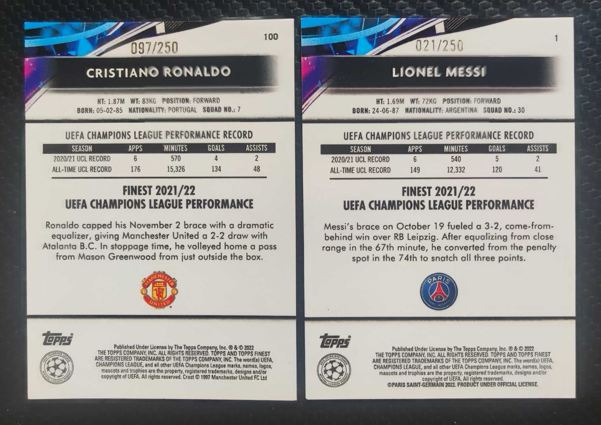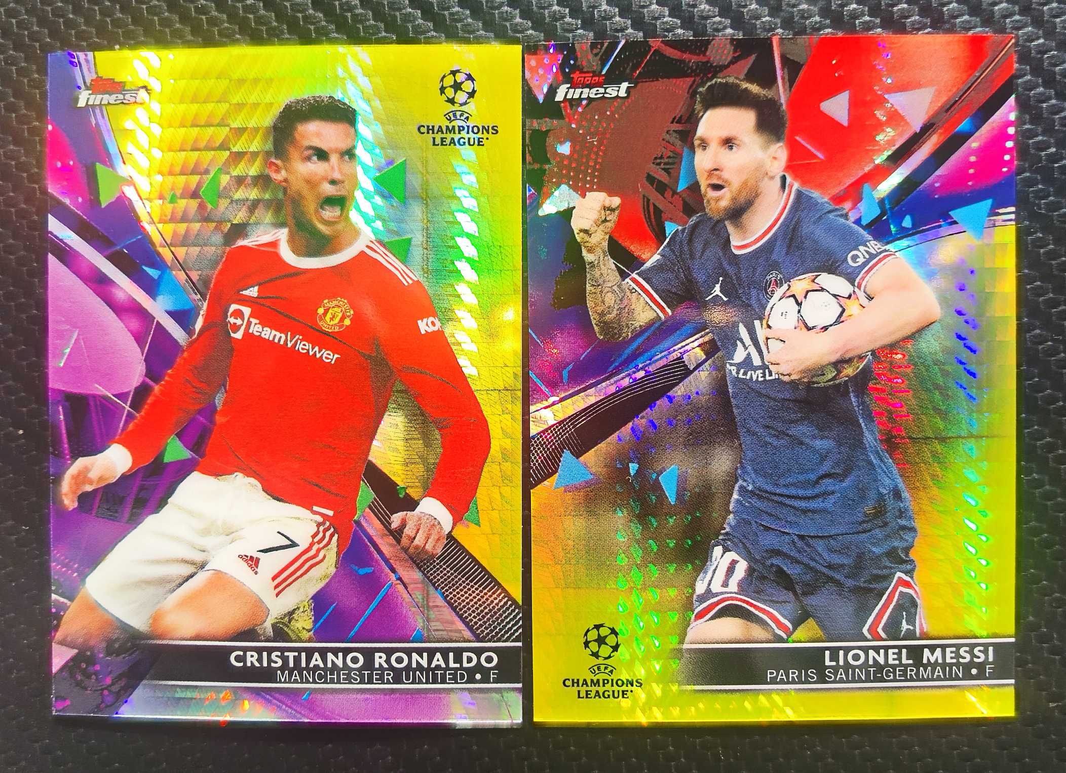 2022 Topps Finest Cristiano Ronaldo 欧冠 葡萄牙 曼联 皇马 c罗 阿根廷 巴黎 梅西 250编 金 黄 龙鳞折 2张 打包 lot 实卡精美 卡品见图 阅读描述