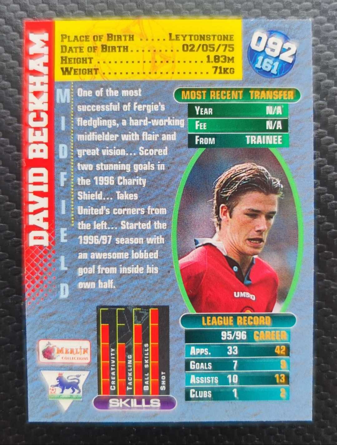 1997 Merlin 英超 David Beckham RC 金标 梅林 曼联 红魔 新秀 举手贝 大卫 贝克汉姆 小贝 万人迷 稀有老卡 实卡精美 卡品见图 阅读描述