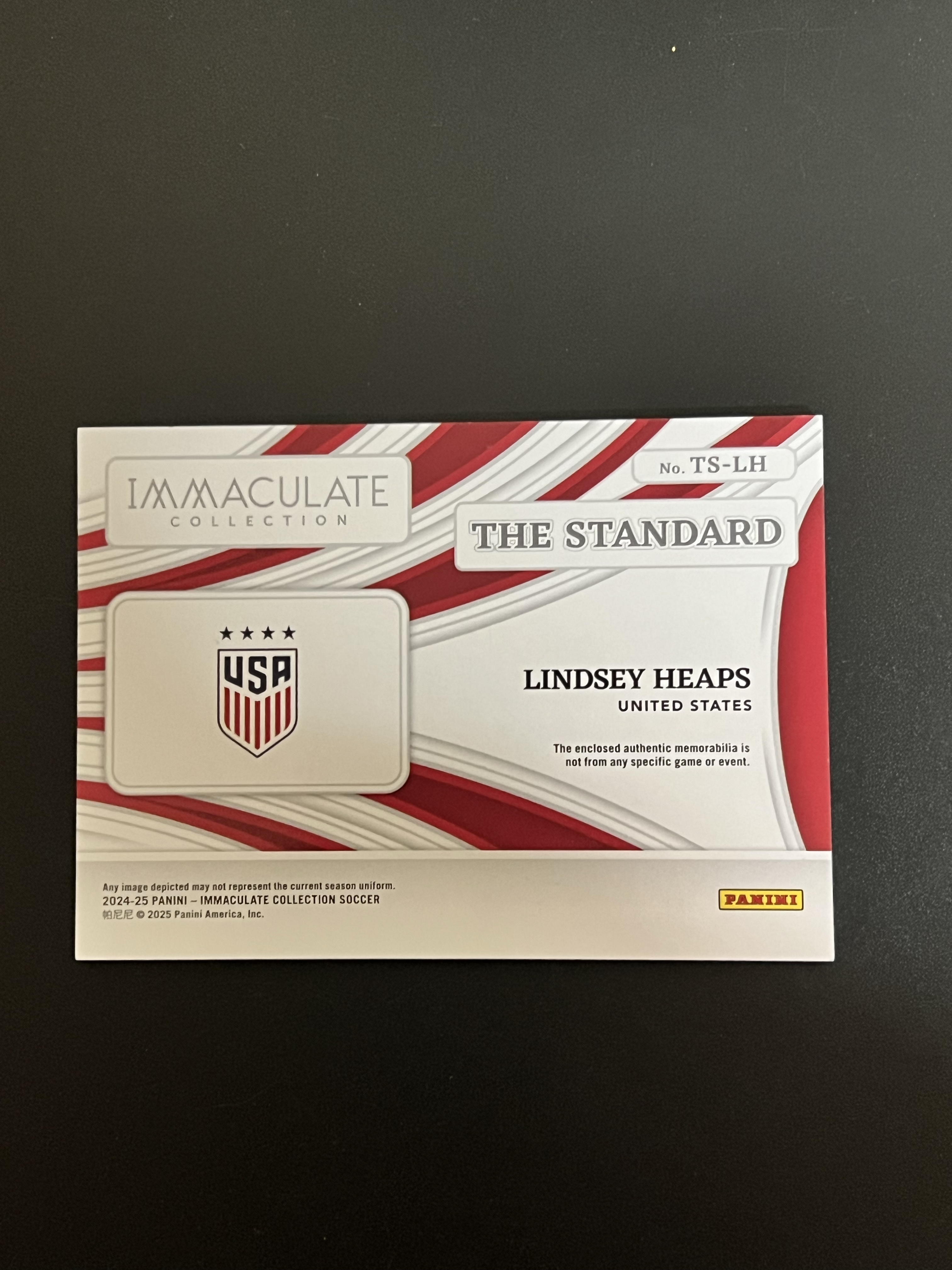 2024-25 Panini IMMACULATE 爱咪咪 林赛 希普斯 物料 球衣卡 女足 美国 65编 LINDSEY HEAPS 收藏必备 毛毛