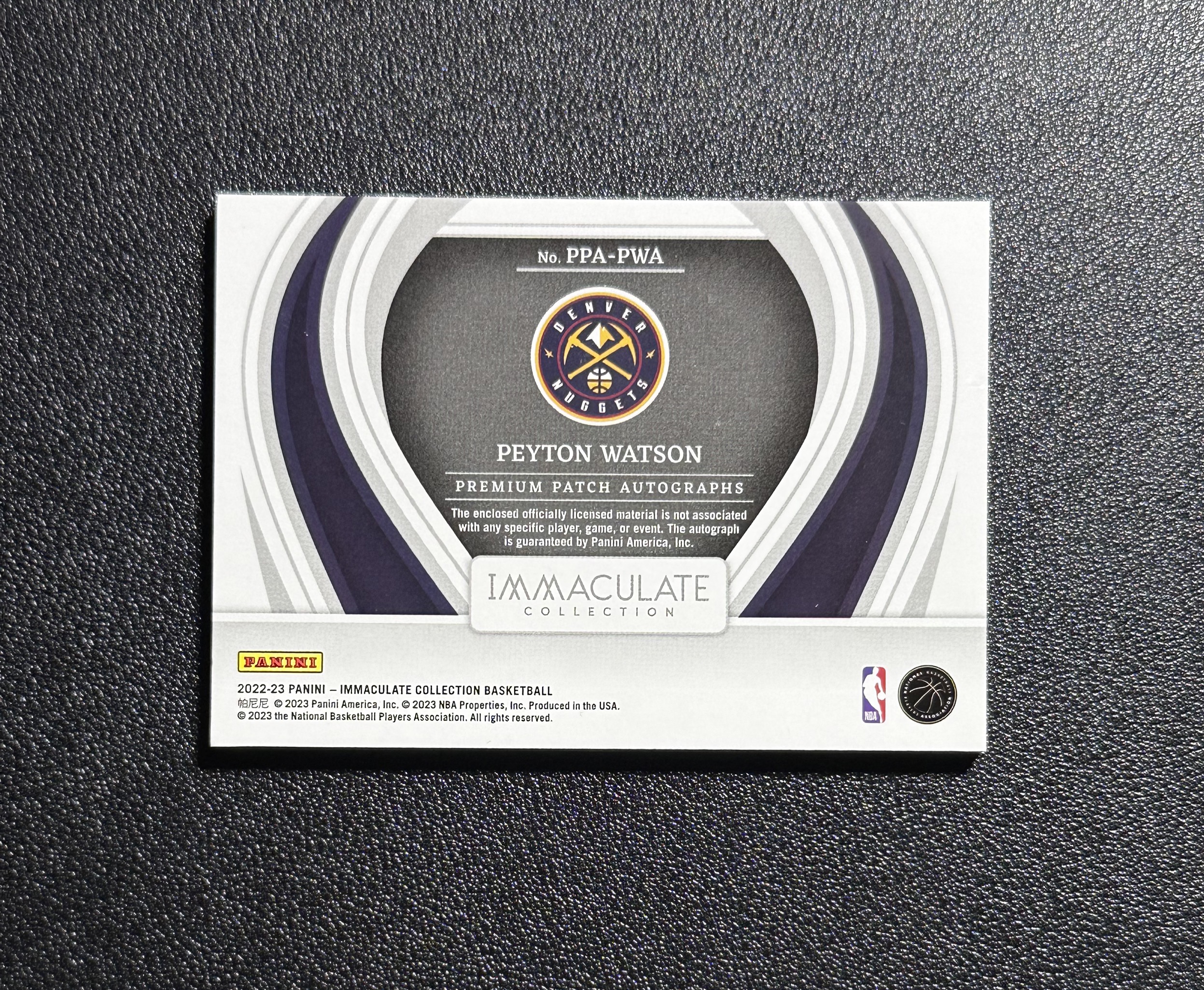 【一支鼎】2022-23 Panini Immaculate Peyton Watson 新秀RC 掘金 沃特森 50编 patch 签字 RPA PPA 瑕疵如图【KBG】