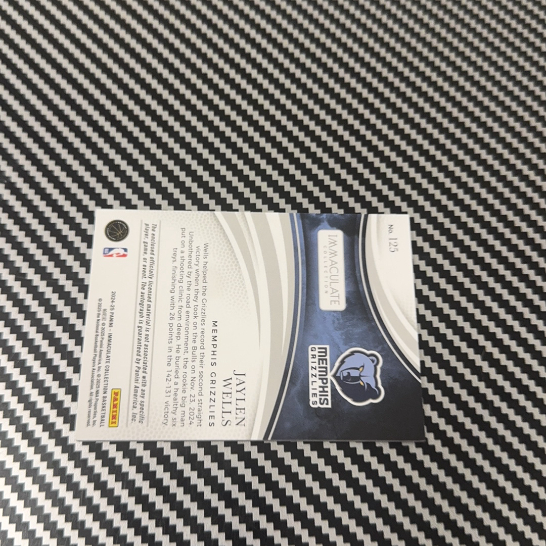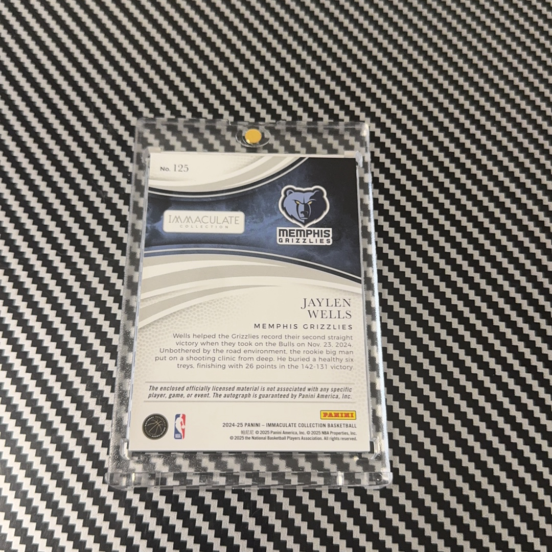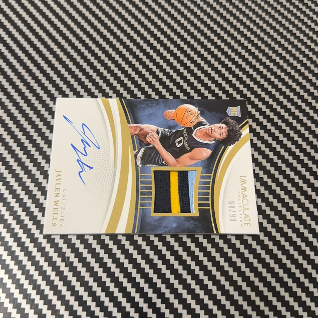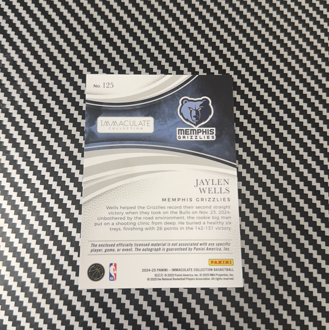 2024-25 Panini Immaculate Jaylen Wells RC imm 爱咪咪 灰熊 新秀RC 杰伦 威尔斯 68/99编 卡签 签字 三色球衣物料暴力切割 最正RPA 瑕疵如图