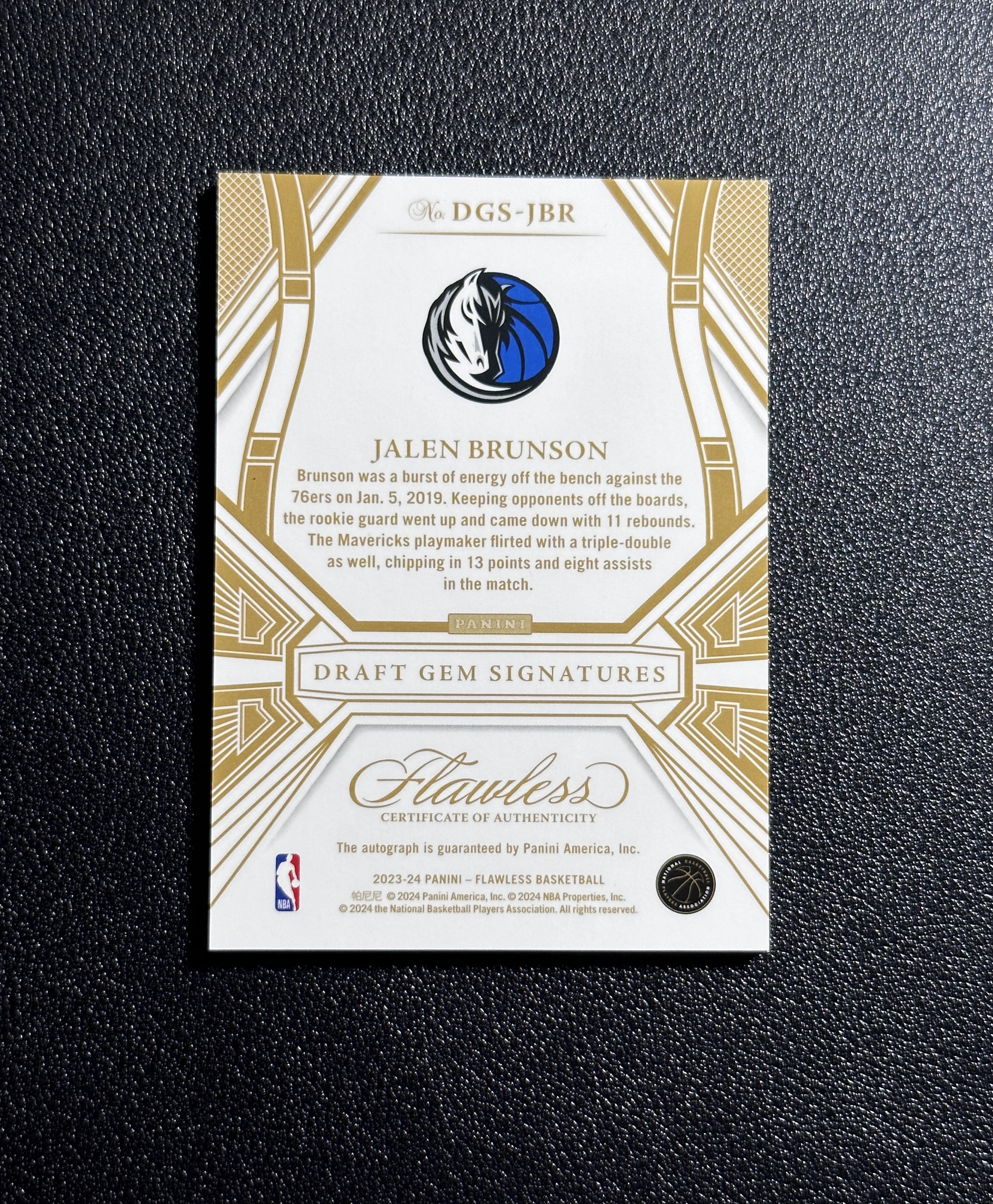 【一支鼎】2023-24 Panini Flawless Jalen Brunson 手提 独行侠 布伦森 2/3编 选秀签字 卡签 新秀年选图 紫平行 瑕疵如图【KBG】