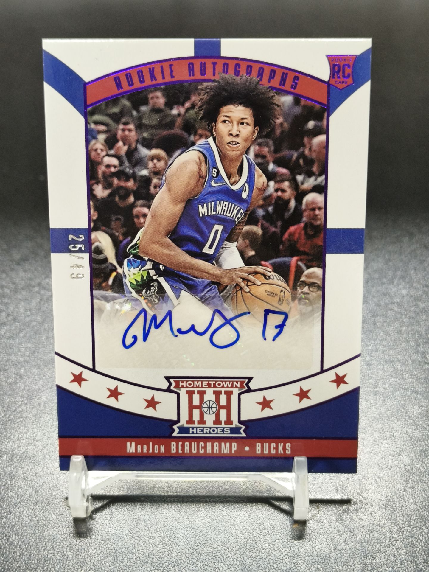 【浩行拍卖】2022-23 panini chronicles hometown heroes marjon beauchamp 编年史 家乡英雄 雄鹿 比彻姆 rc 新秀 签字 紫平行 25/49编 瑕疵看图「绵薯」1111D08劉