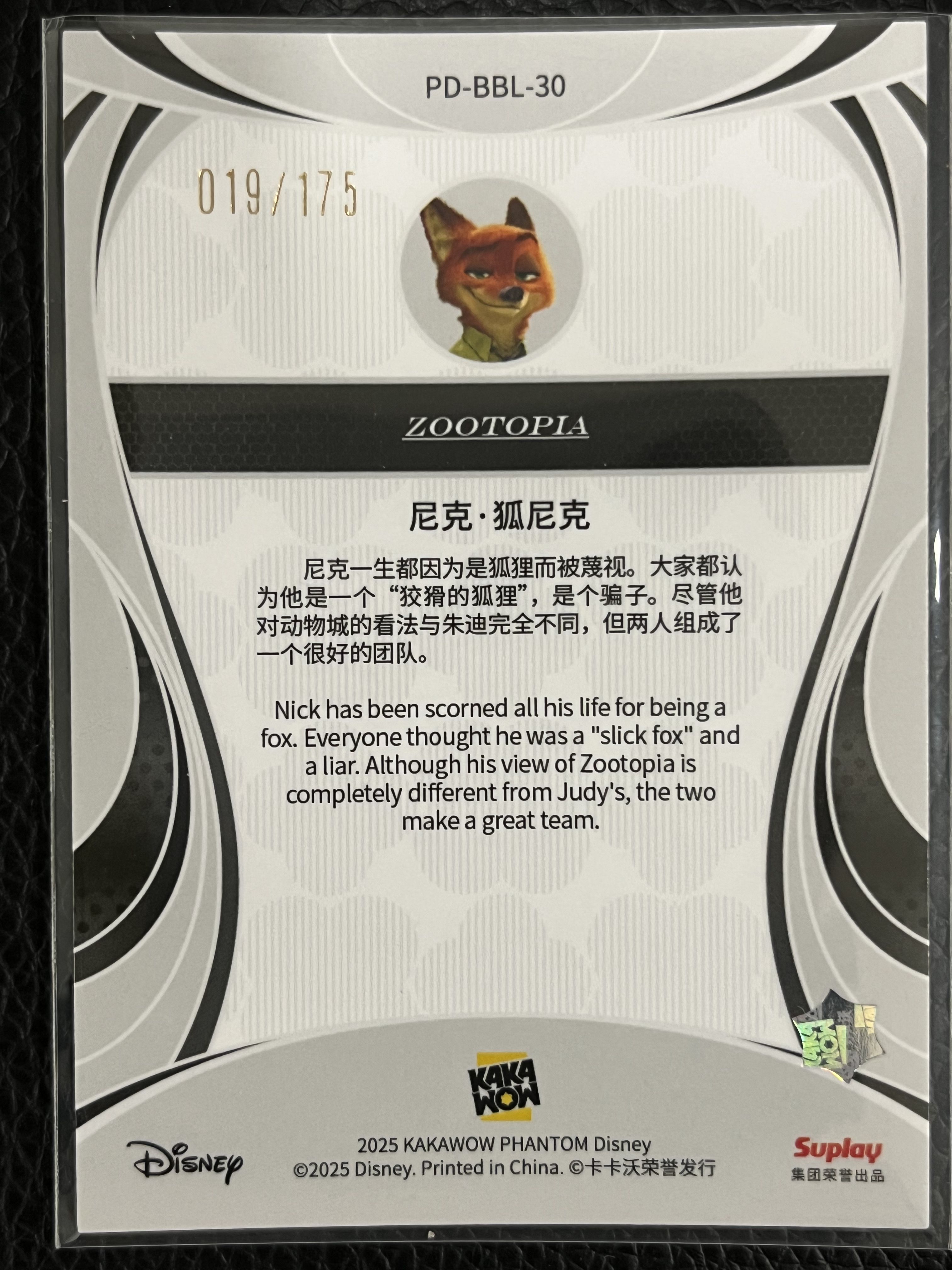 卡卡沃 2025 KAKAWOW PHANTOM 迪士尼系列收藏卡 基础卡-蓝 西GXX(11A)19/175编 卡号30 尼克·狐尼克 Nick Wilde