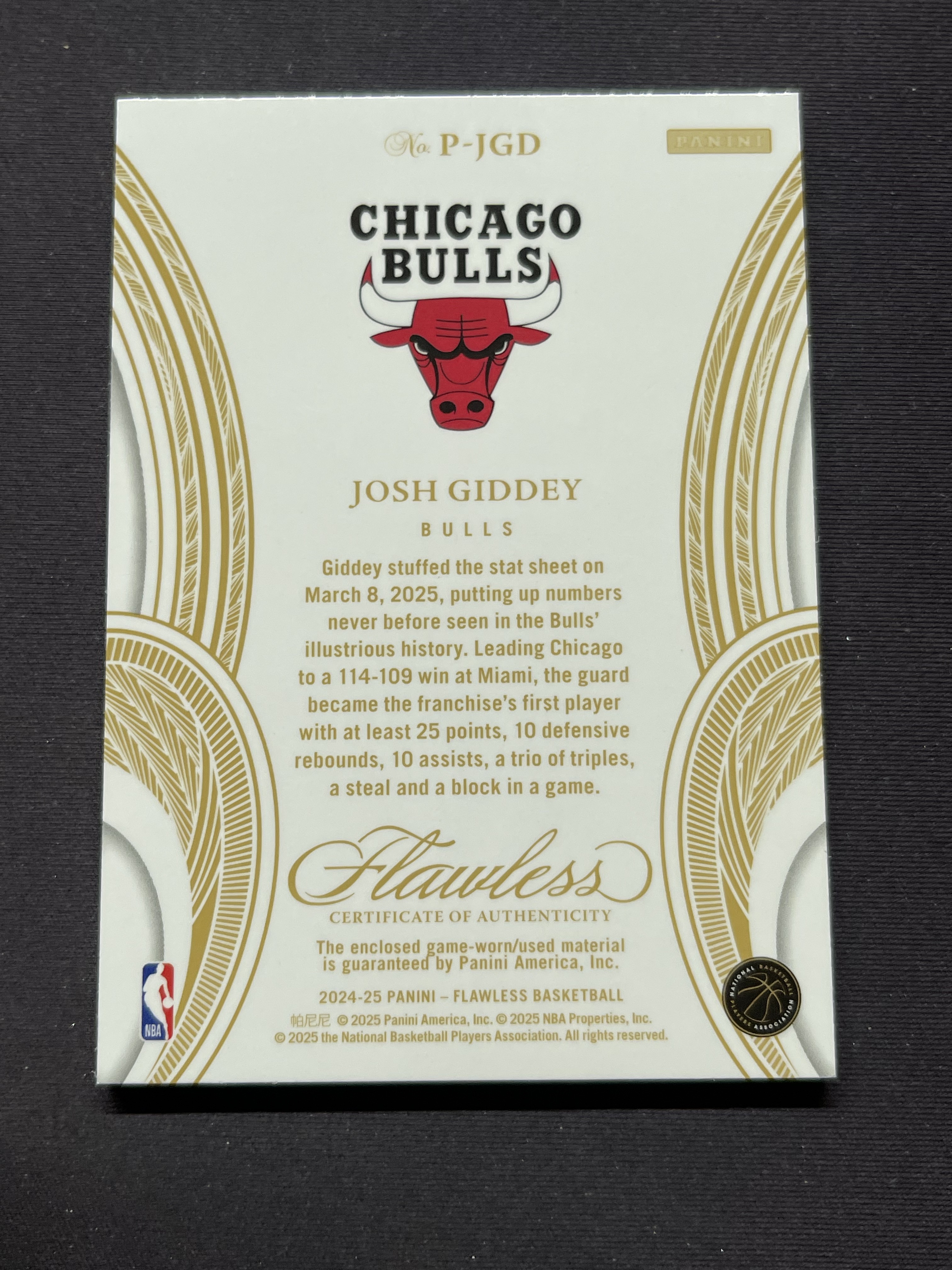 2024-25 Panini Flawless Josh Giddey 手提 公牛 约什吉迪 patch 02/15编 红版 不累计「老夫子」阿宾
