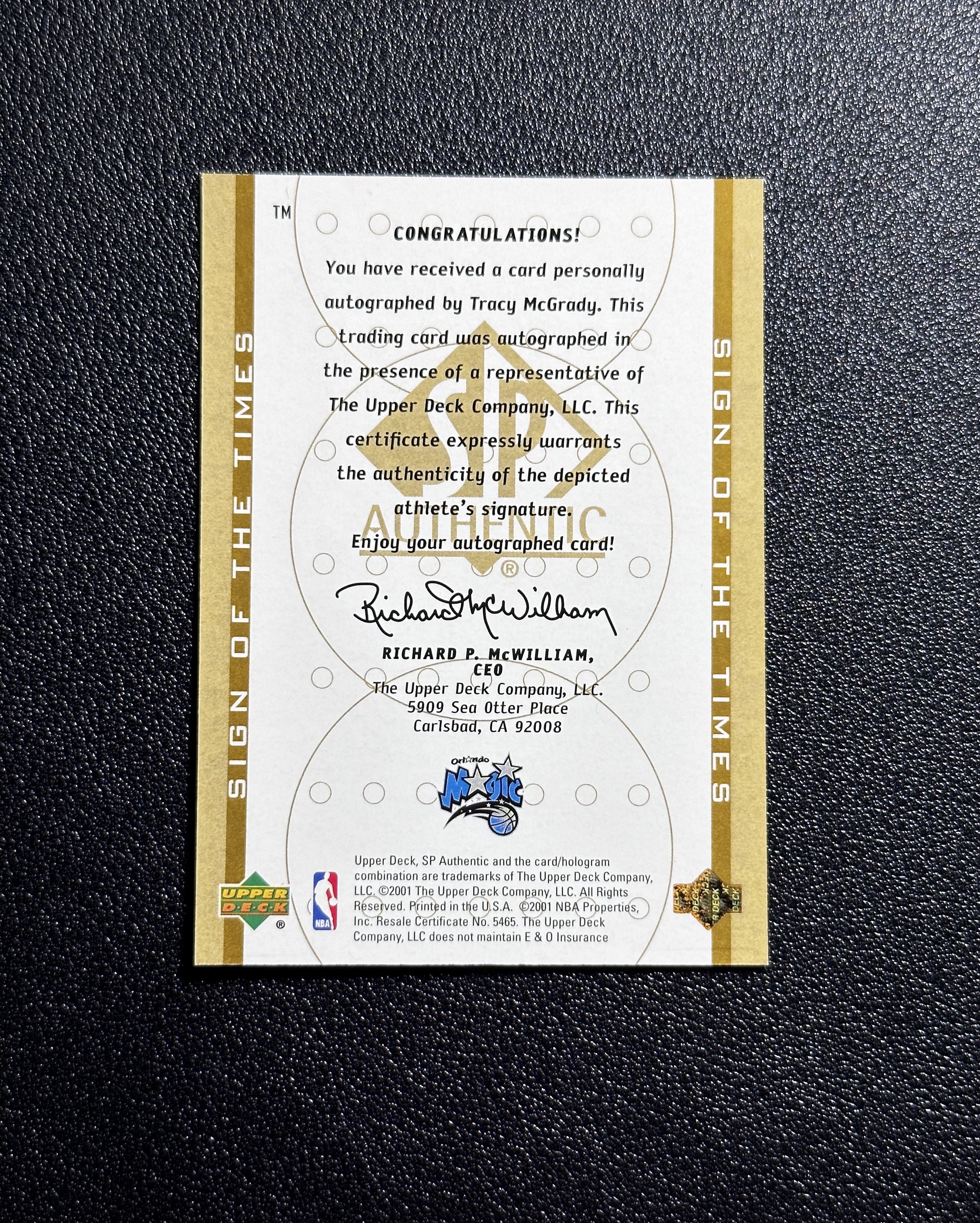 【一支鼎】2001 Upper Deck SP Tracy McGrady UD SP 魔术 麦迪 签字 卡签 瑕疵如图【KBG】
