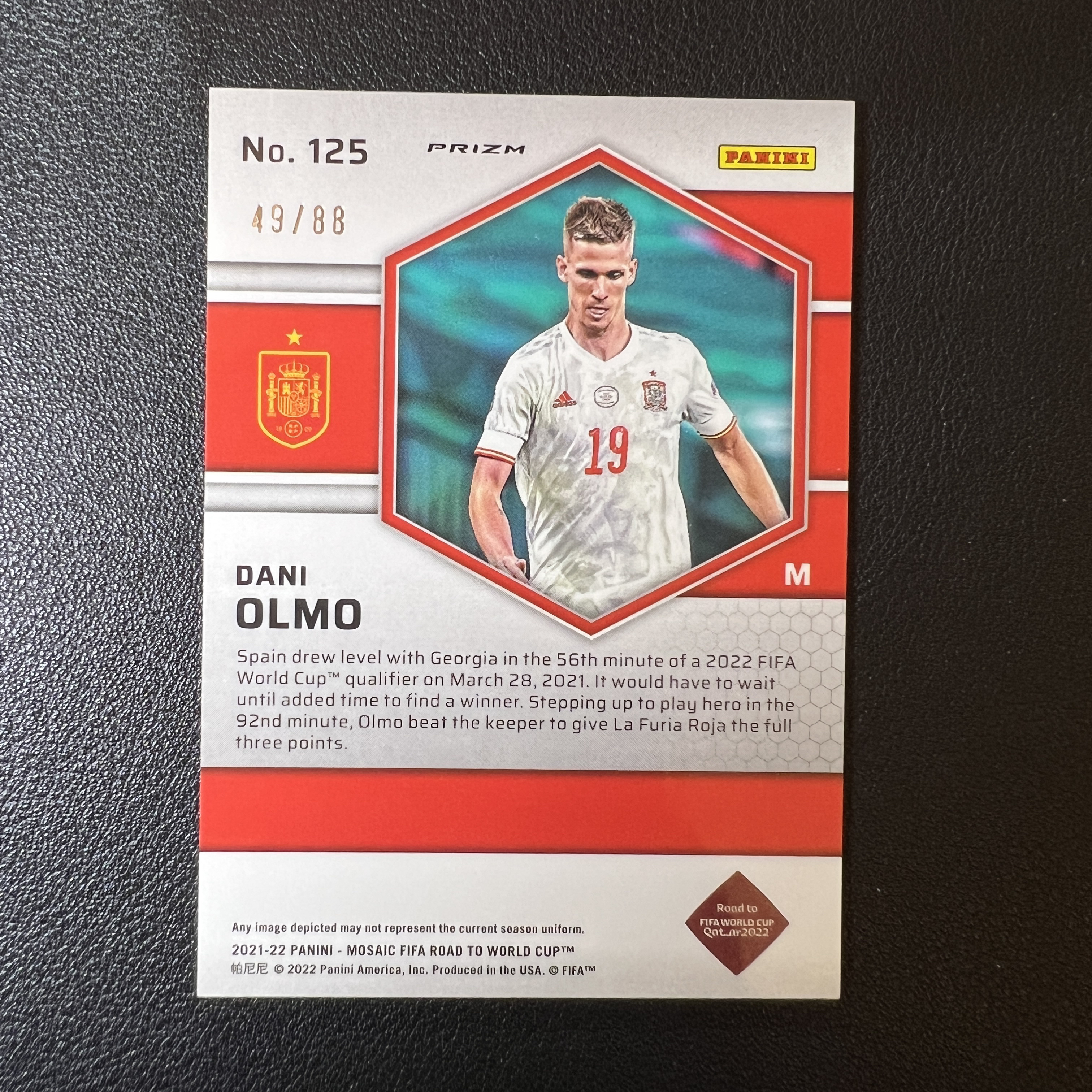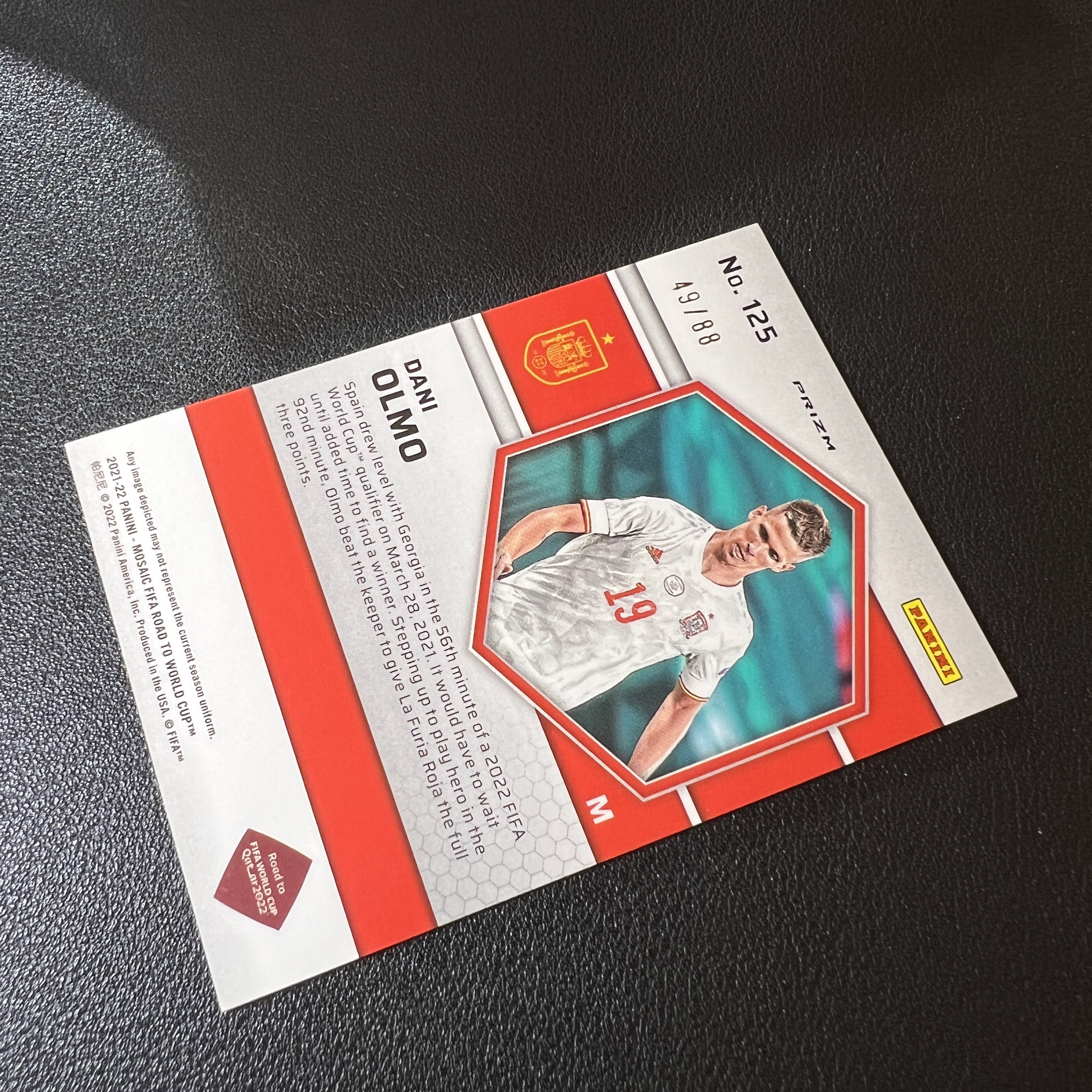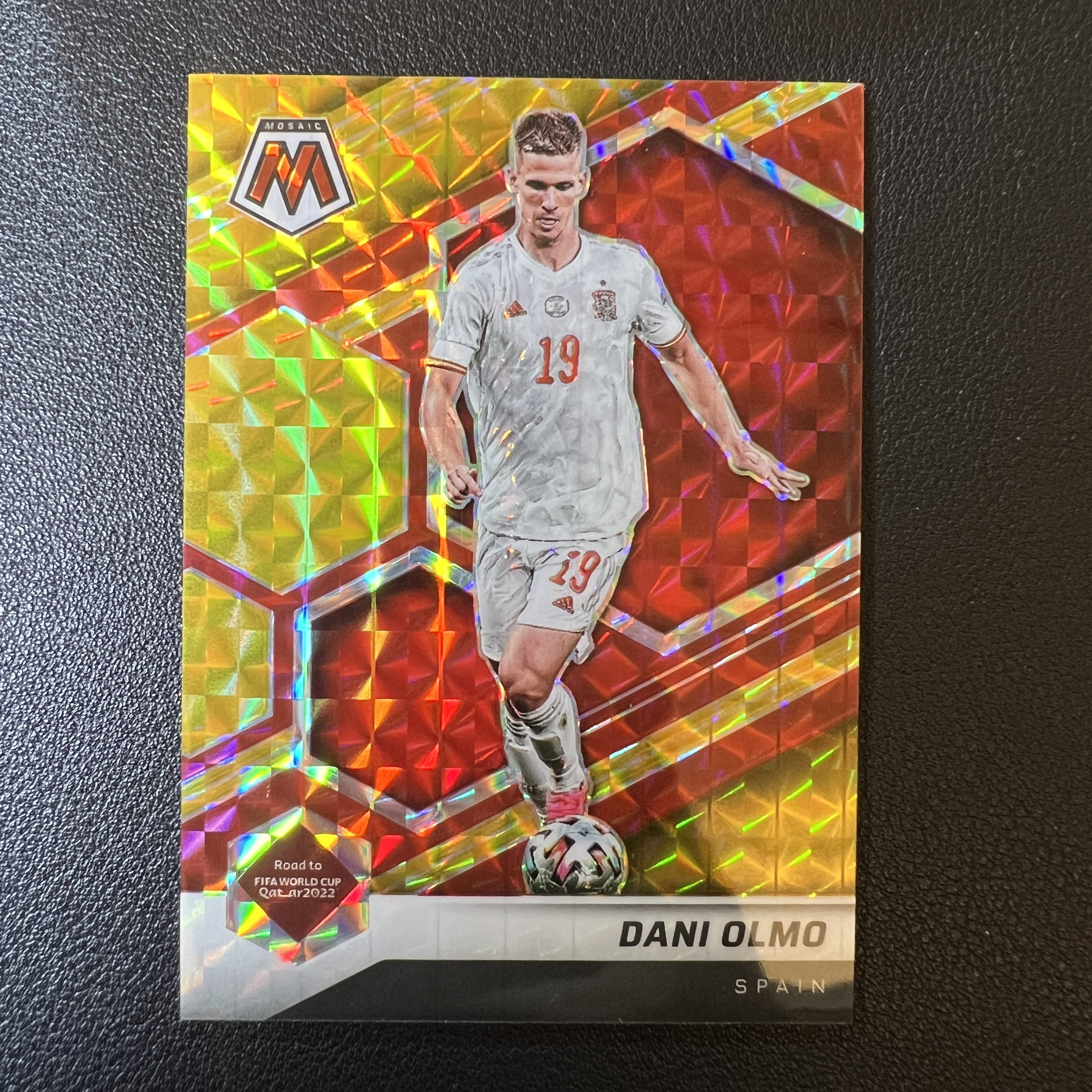 2021-22 Panini Mosaic Dani Olmo 2022世界杯 马赛克 西班牙 巴塞罗那 巴萨 中场 奥尔莫 88编 红金折 收藏必备 轻印-SY5343