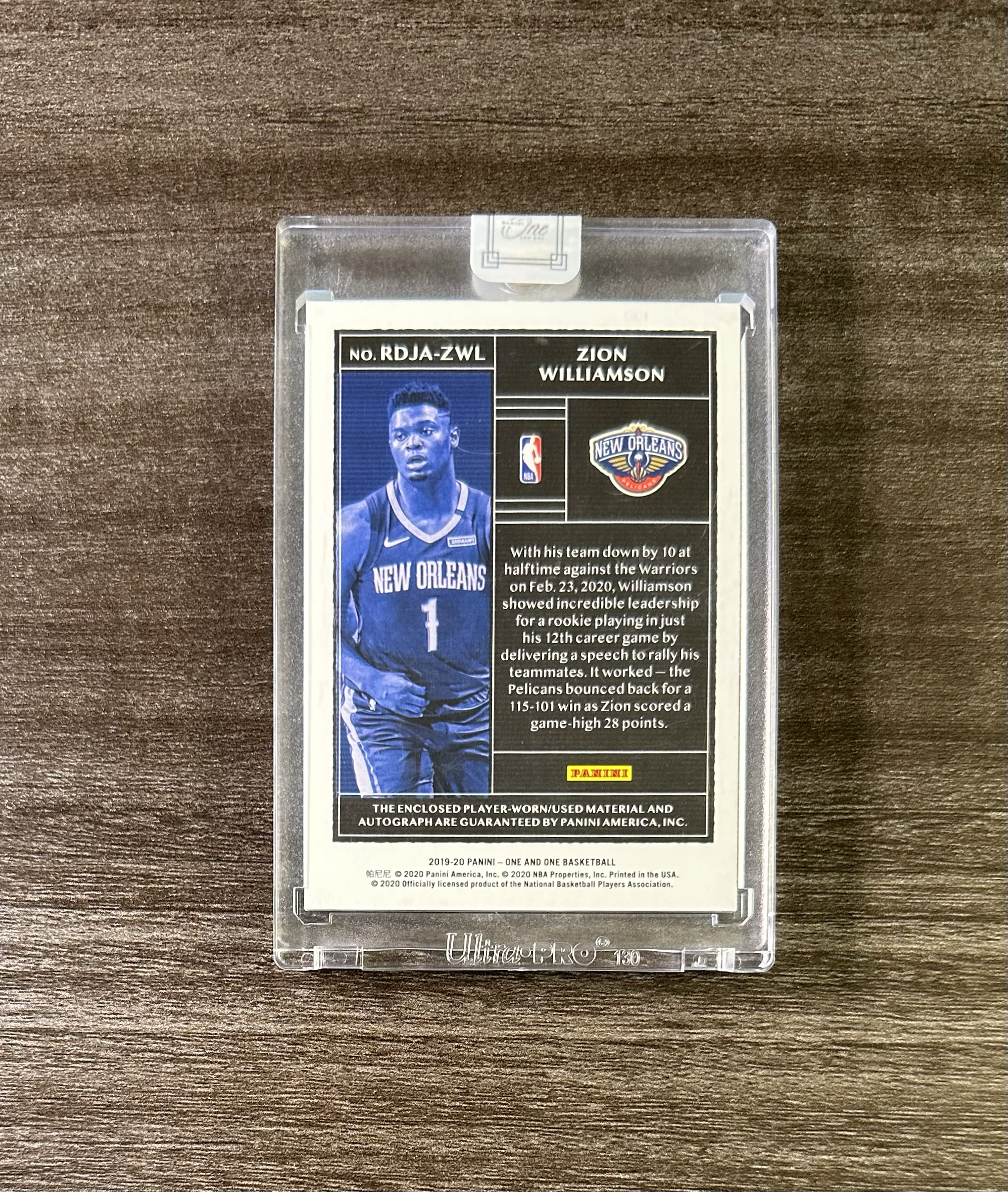 【1024拍卖】2019-20 One and One RPA Dual 双窗patch签字 新秀RC /99编 Zion Williamson 蔡恩威廉森 锡安 胖虎 鹈鹕 原封砖 比恩