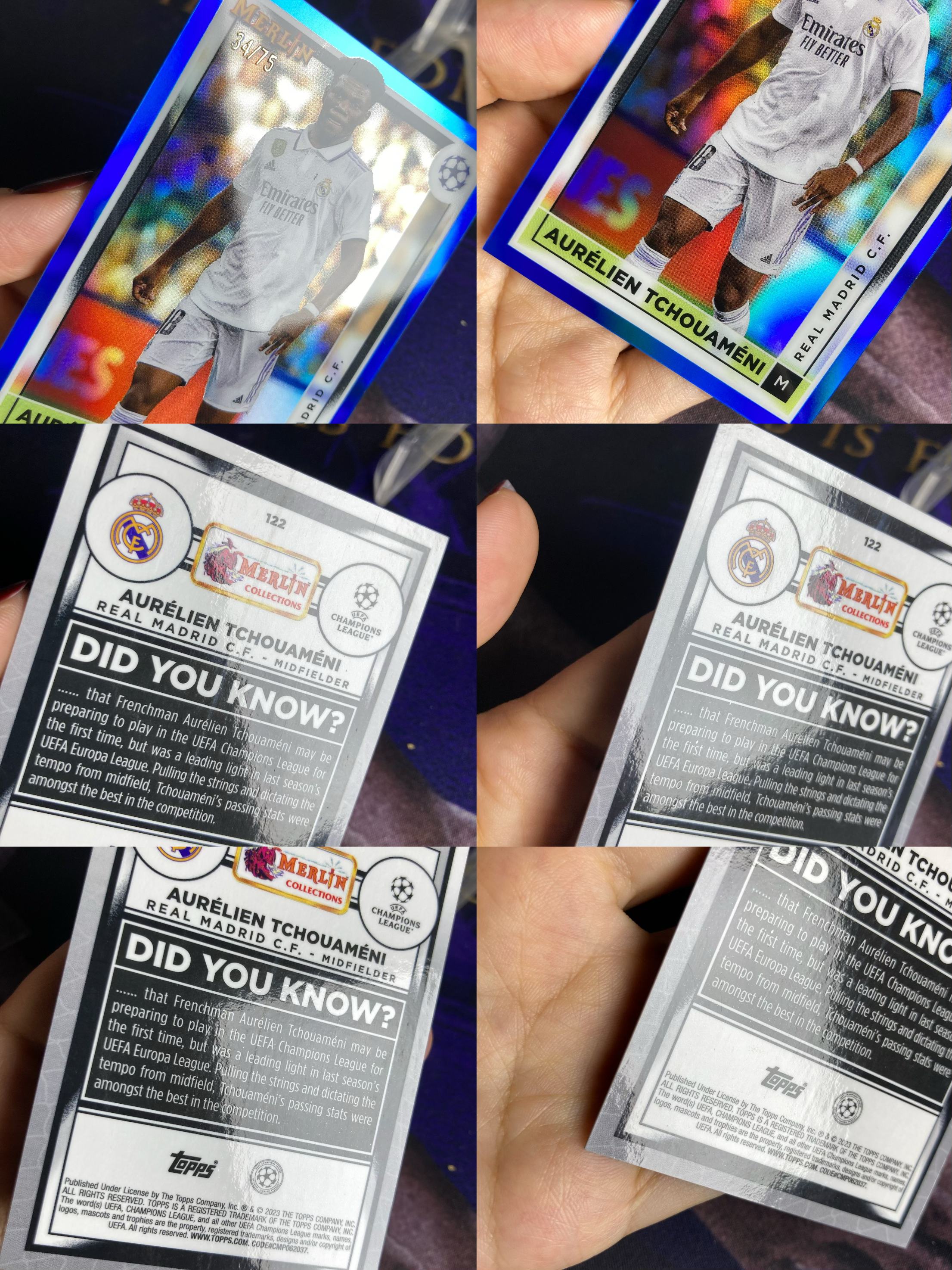 2023 Topps Merlin chrome Aurélien Tchouameni 【星卡优转】梅林系列 皇马 楚阿梅尼 34/75编 蓝折 专收必备 微瑕如图 亦少