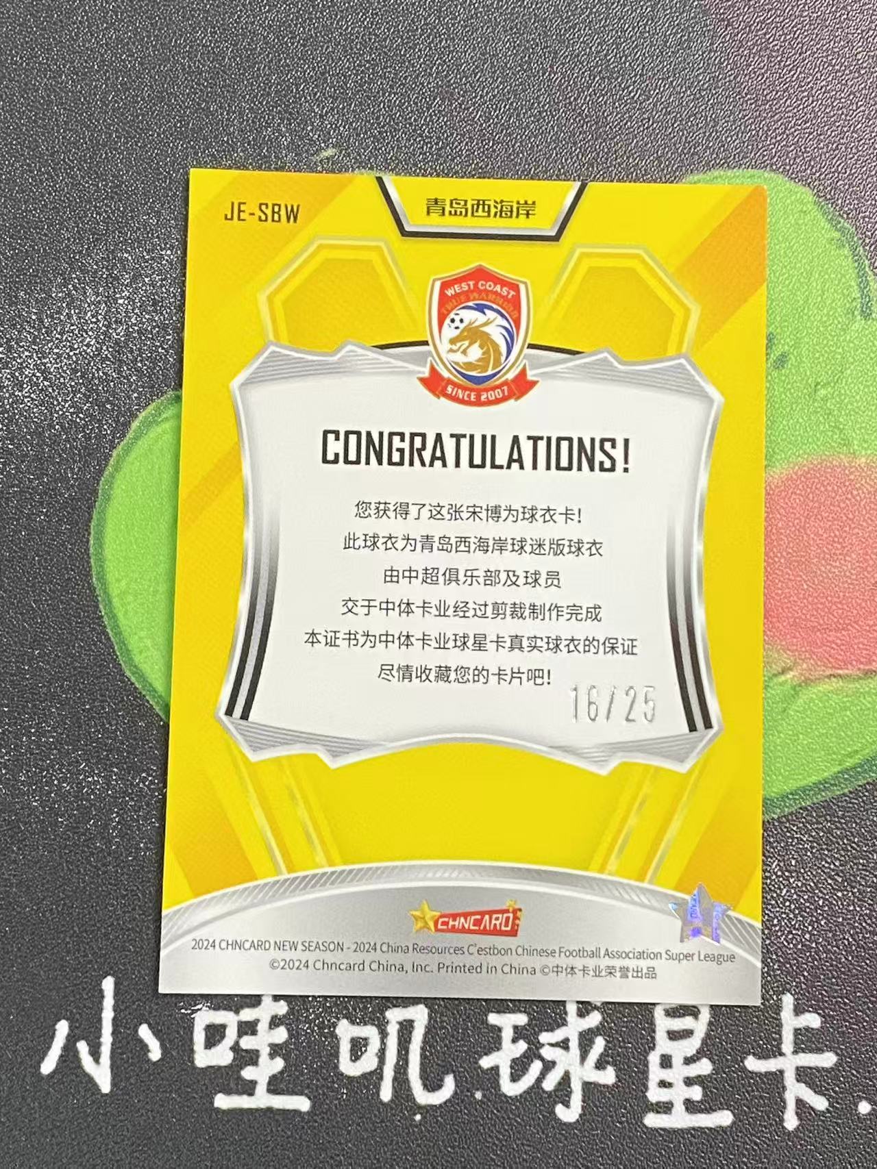 2024 Chncard New Season Song Bowei CSL 中体卡业 宋博为 25编 物料 球衣 微瑕如图【ZYP代拍】XF25