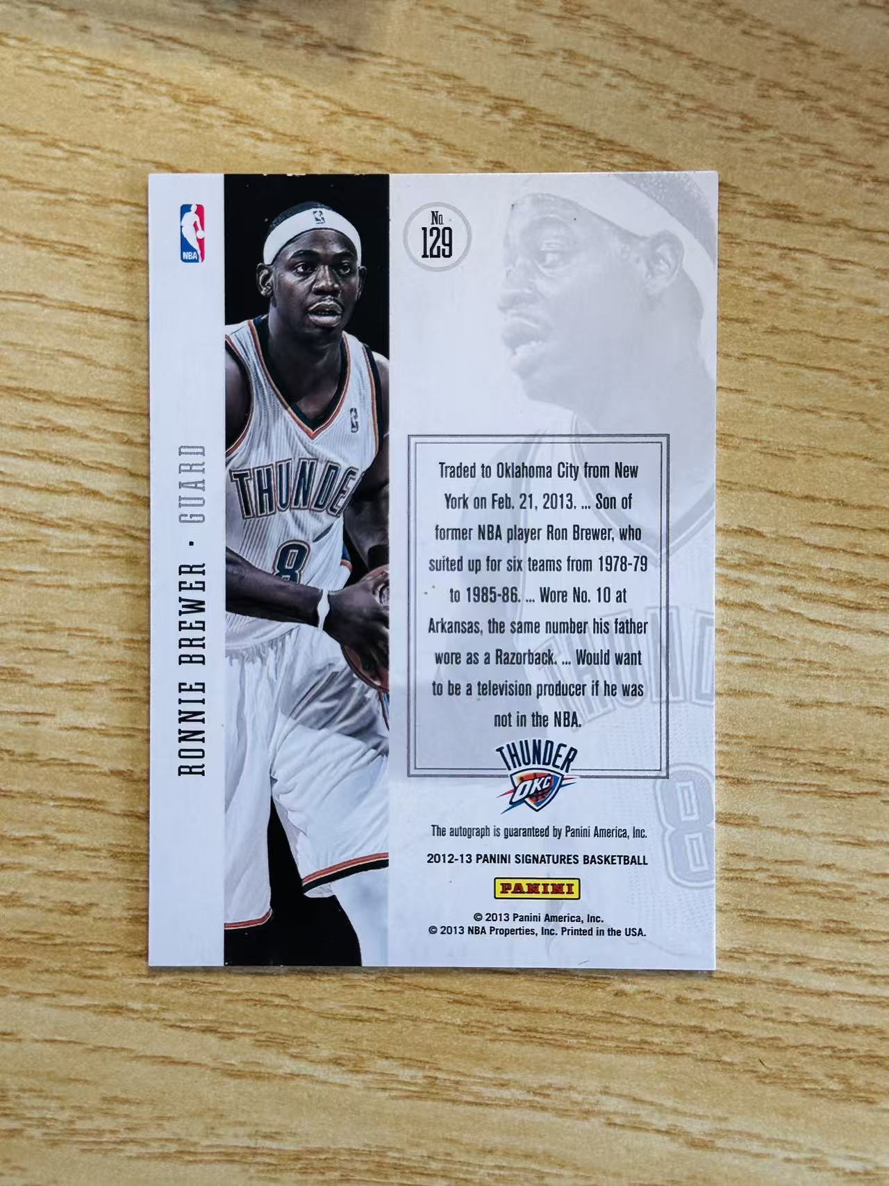 2012-13 Panini Signature Ronnie Brewer 嘿嘿代卖 罗尼 布鲁尔 签字 卡签 雷霆 收藏必备