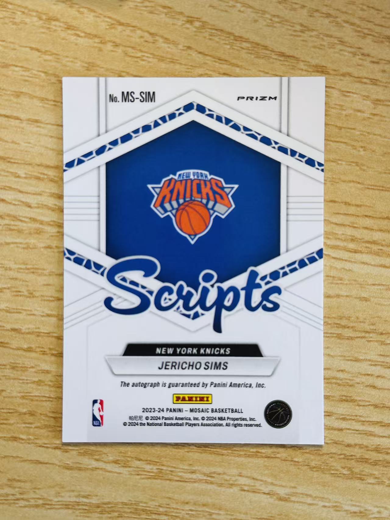 2023-24 Panini Mosaic Jericho Sims 嘿嘿代卖 马赛克 杰里科 西姆斯 签字 尼克斯 收藏必备
