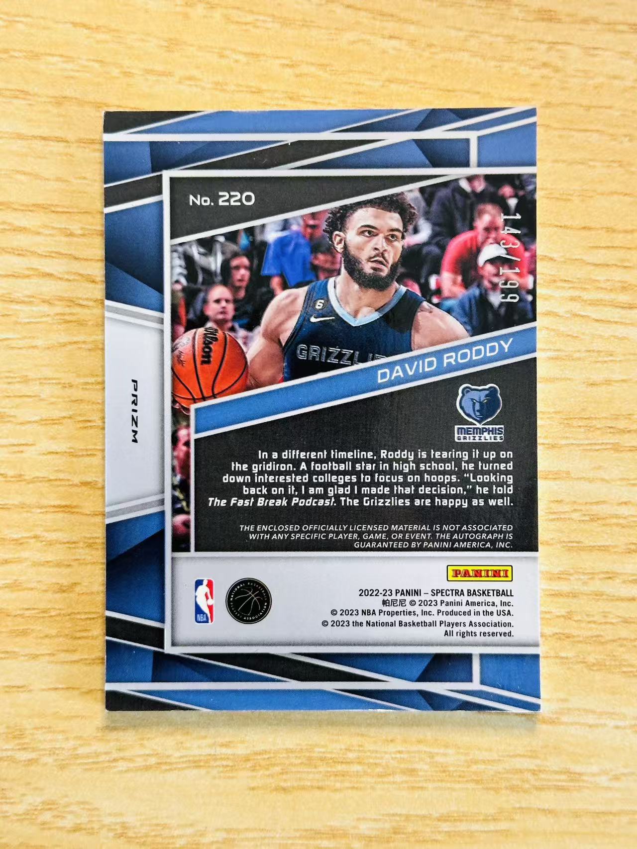 2022-23 Panini Spectra David Roddy 嘿嘿代卖 光谱 大卫 罗迪 新秀 RC 签字 卡签 银折 199编 灰熊 收藏必备