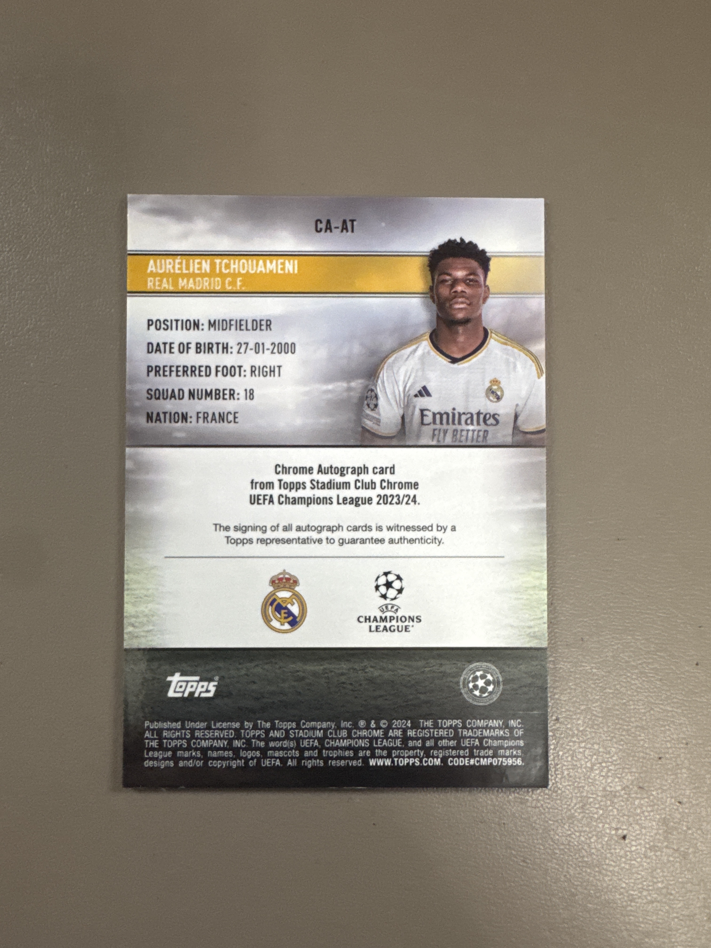 2024 Topps Stadium Club Chrome Aurélien Tchouameni 楚阿梅尼 琼阿梅尼 签字 签名 银折 竞技场 欧战 欧冠 皇家马德里 皇马 法国 爆爆无聊6