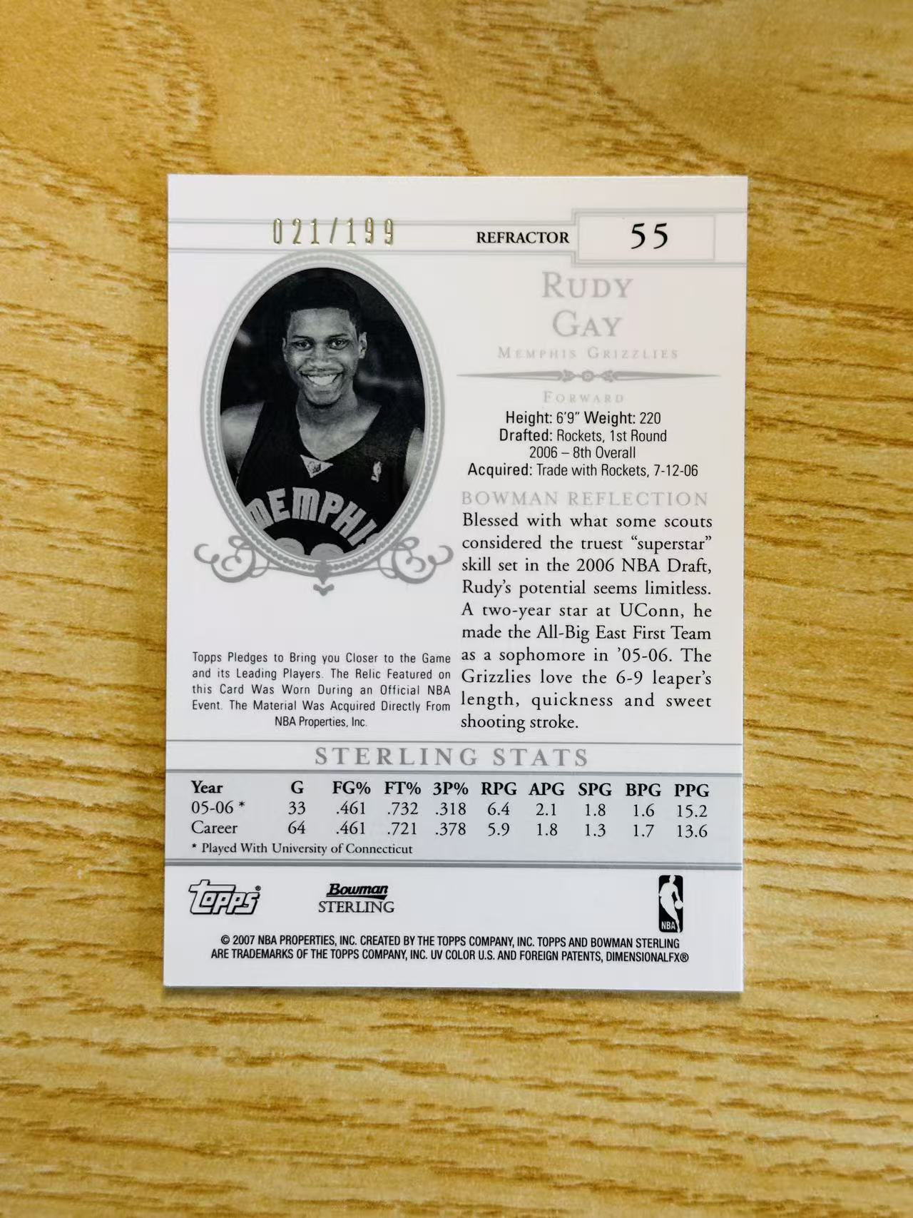2007 Topps nba Rudy Gay 嘿嘿代卖 鲁迪 盖伊 球衣 物料 银折 灰熊 闪版 收藏必备
