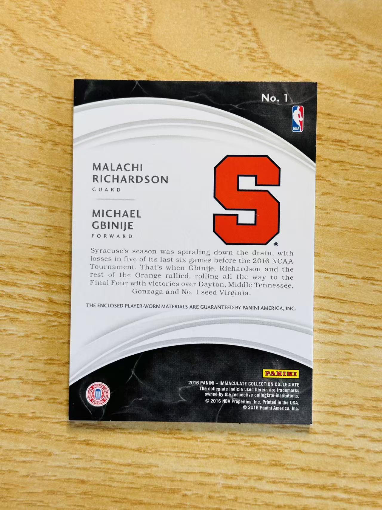 2016-17 Panini Immaculate Collection Malachi Richardson 嘿嘿代卖 马拉奇 理查德森 球衣 物料 双人 闪版 25编 Patch 收藏必备