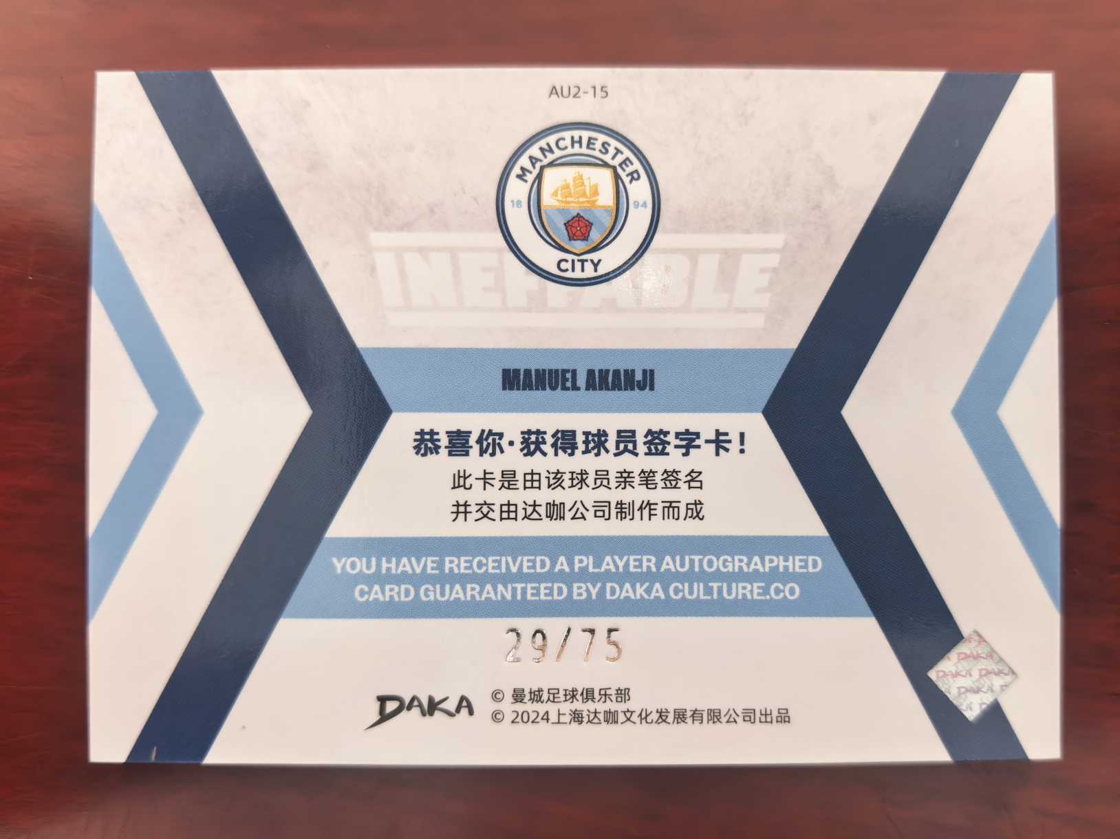 2024 DAKA / Manuel Akanji 达咖 曼城队盒 阿坎吉 29/75编 限量 签字 贴签 专收必备 国际米兰
