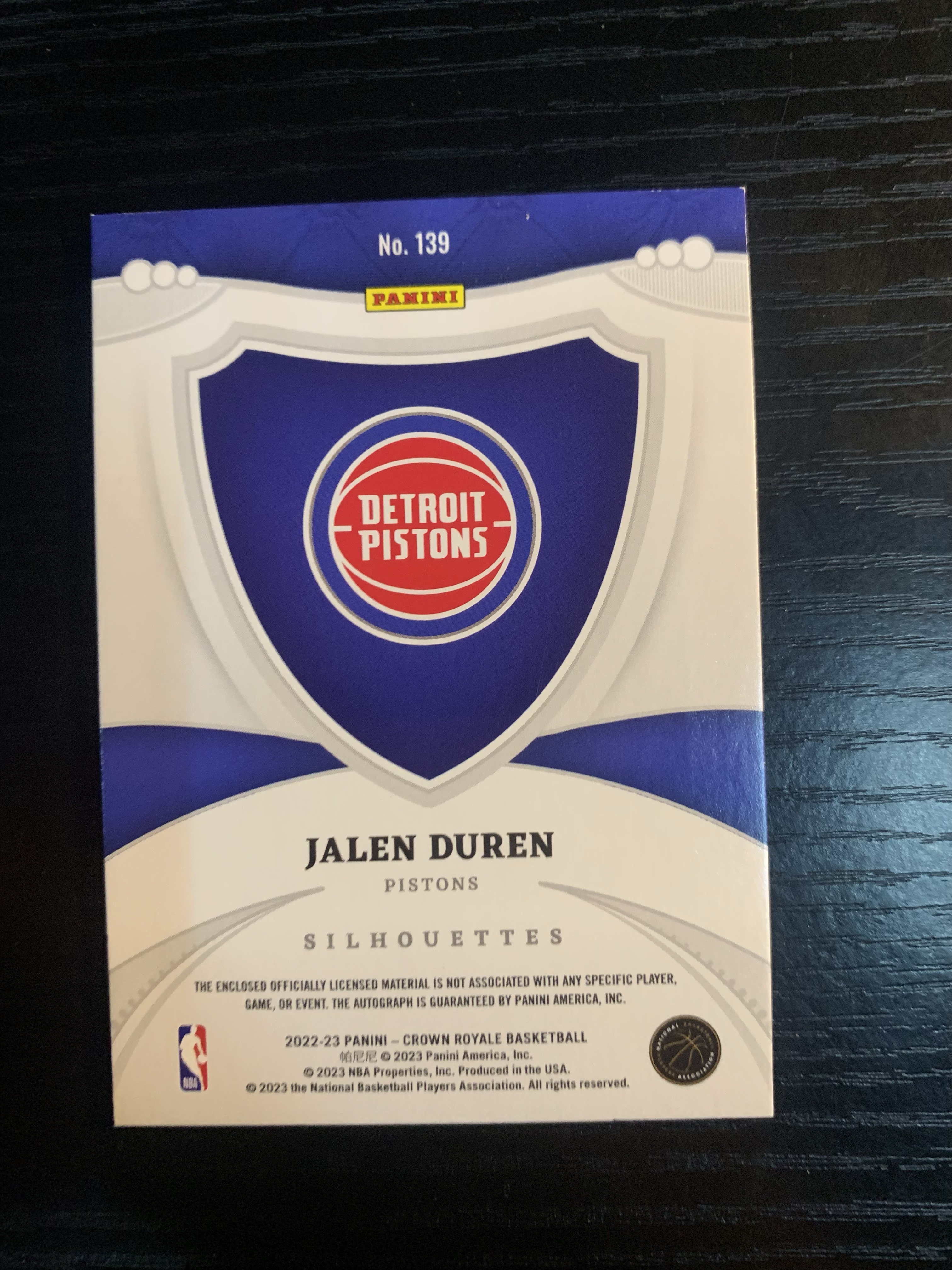 2022-23 Panini Crown Royale Jalen Duren RC Sunky 皇冠 活塞 新秀 贾伦杜伦 149/199编 签字 卡签 球衣 RJA 于此