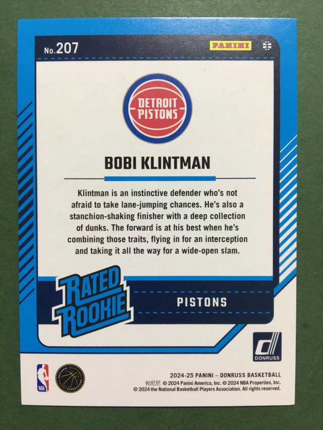 2024-25 Panini Donruss Bobi Klintman RC 杜蕾斯 新秀 活塞 博比 克林特曼 125编 星星折 折射 base 卡斯尔同届 cc坎宁安队友 收藏必备 卡品如图#冯