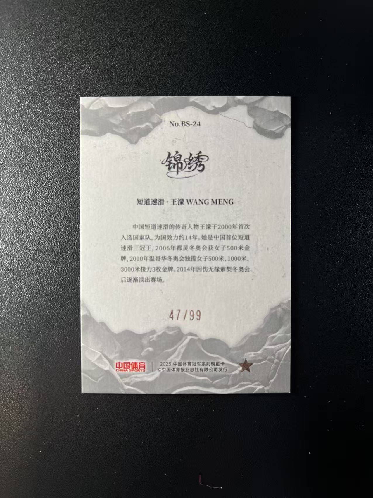 2025 奇卡 QICA 中国体育 锦绣 王濛 短道速滑 王濛 锦绣系列 玄武磐石特卡 99编 带编 折射 47/99编 蓝折 蓝宝石折 庆祝选图 Basalts特卡 卡品如图 未来可期 Gn2