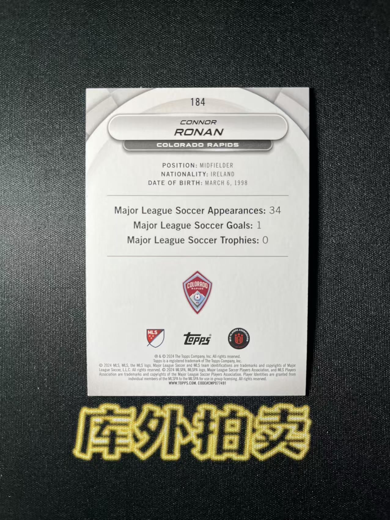 2024 Topps Super Star MLS Connor Ronan 美职联 超巨盒 科罗拉多急流 罗南 06/99编 紫折 特卡 专收必备 卡品如图 PF
