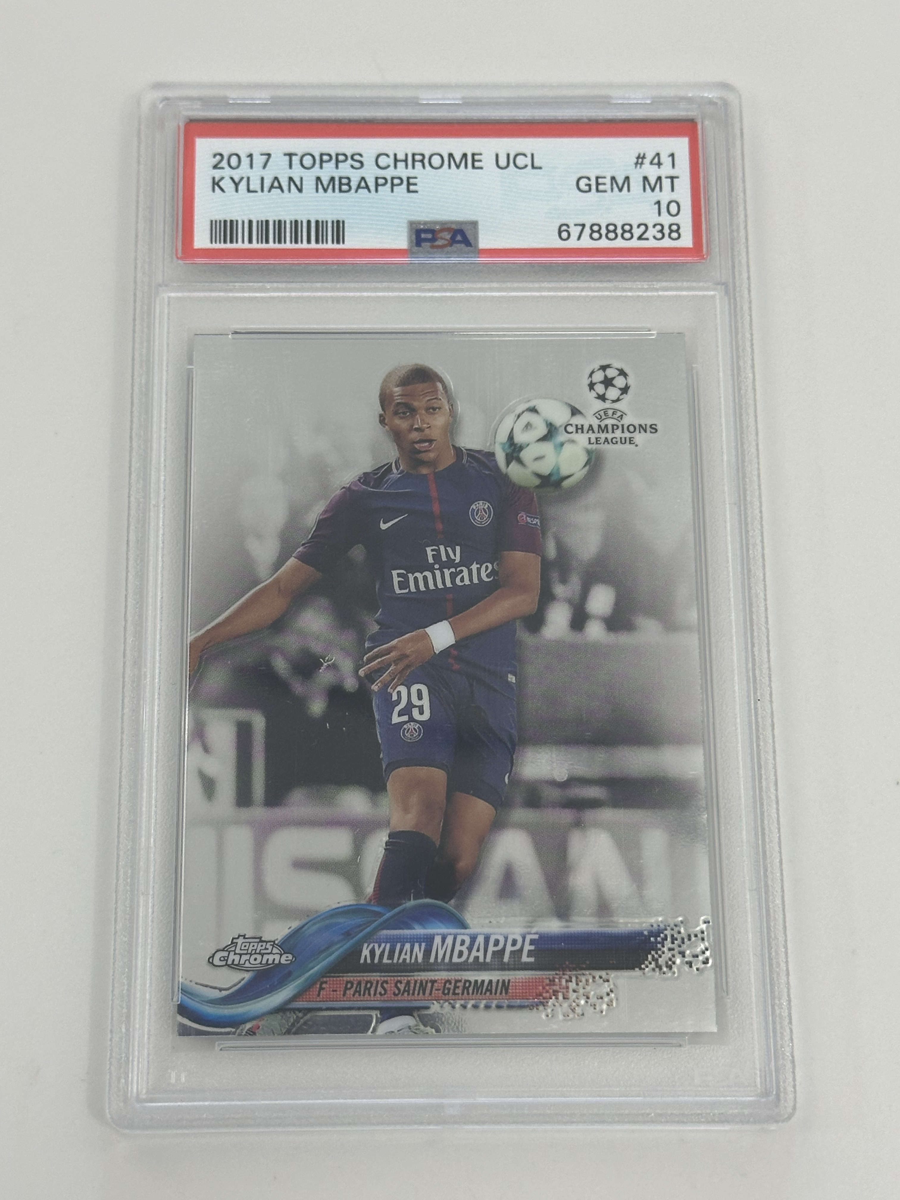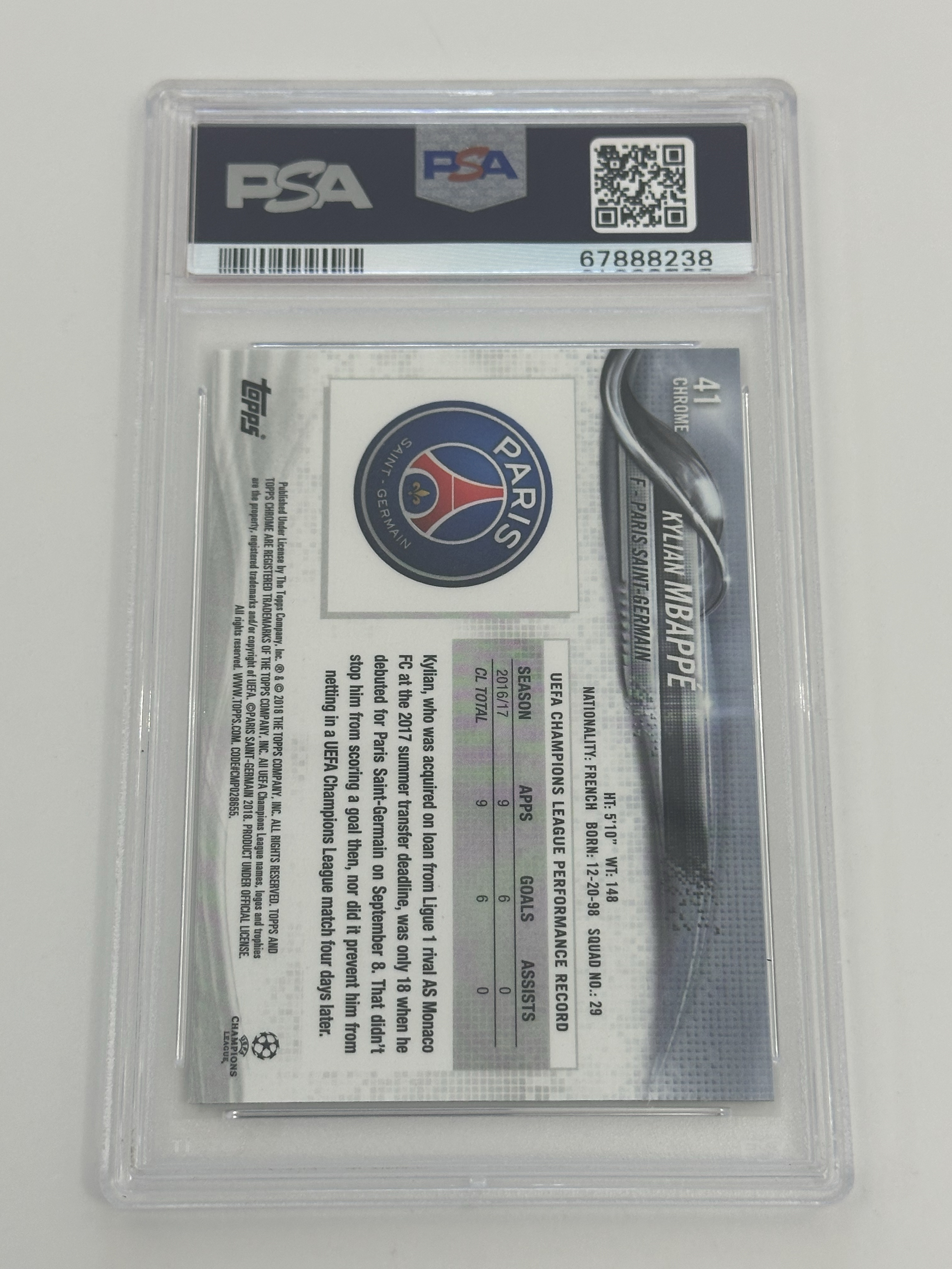 2017-18 Topps 欧冠Chrome 元年 巴黎 姆巴佩 RC新秀 普卡base PSA评级10分 世界杯金靴 欧洲金童奖 法国 皇马 Kylian Mbappe