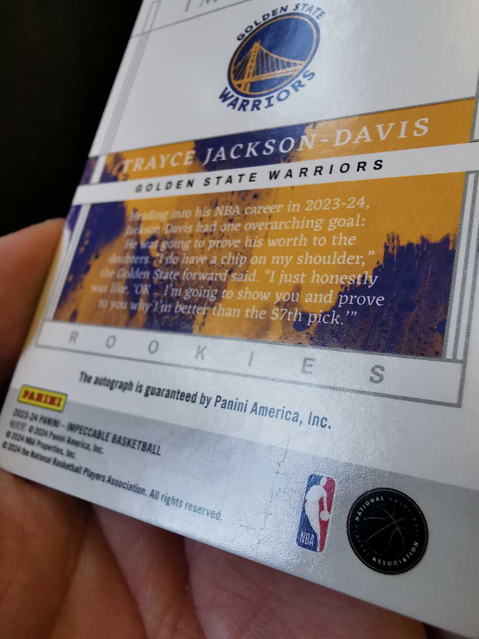 【金矿拍卖】2023-24 impeccable 小真金 勇士新秀rc TJD 特雷斯杰克逊戴维斯 trayce Jackson davis 卡签签字 24/25编 库里队友 潜力新星 背轻印 零零八