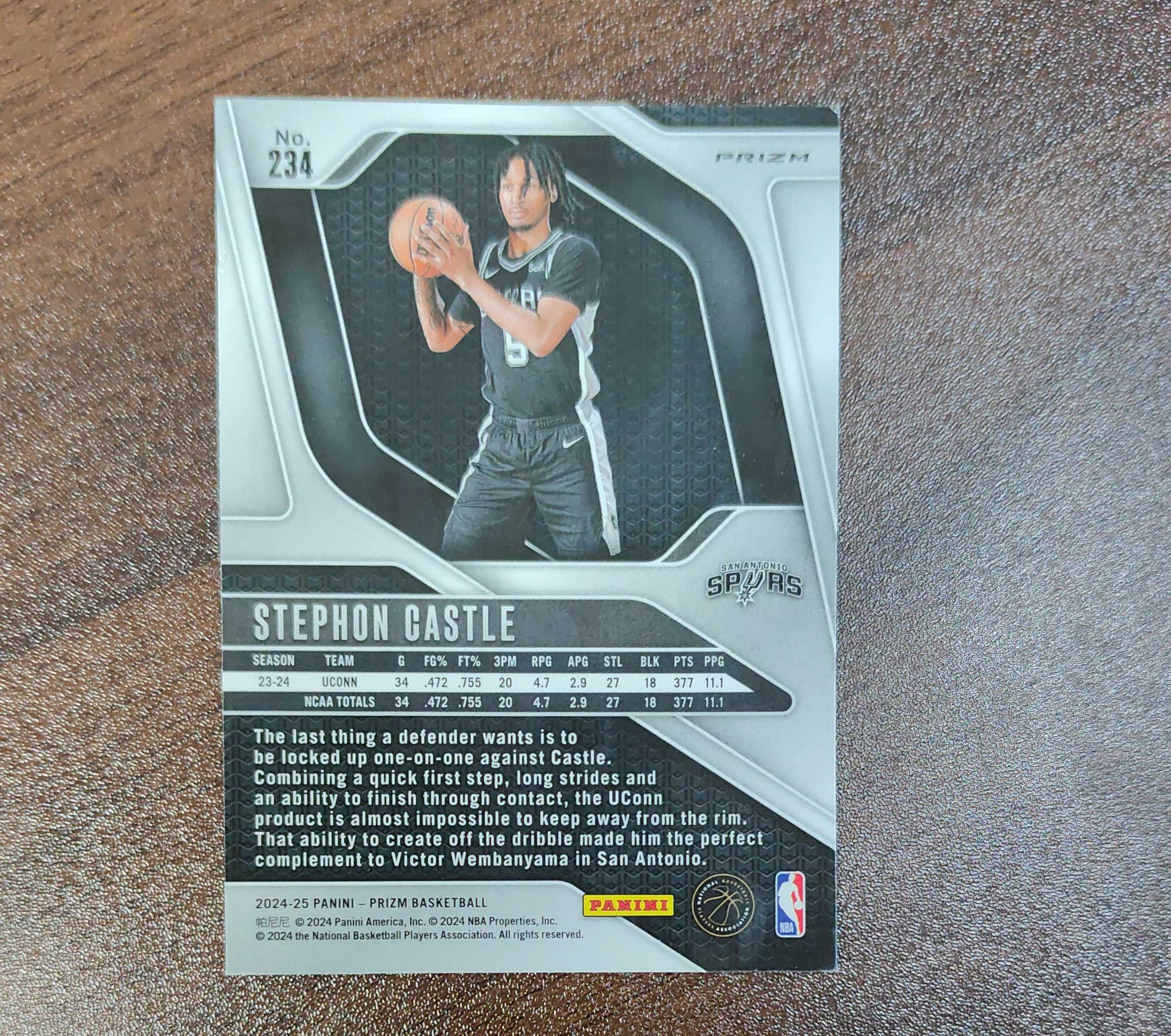 2024-25 Panini Prizm Stephon Castle RC Prizm 斯蒂芬 卡斯尔 RC 新秀 粉碎冰折 马刺 瑕疵见图三