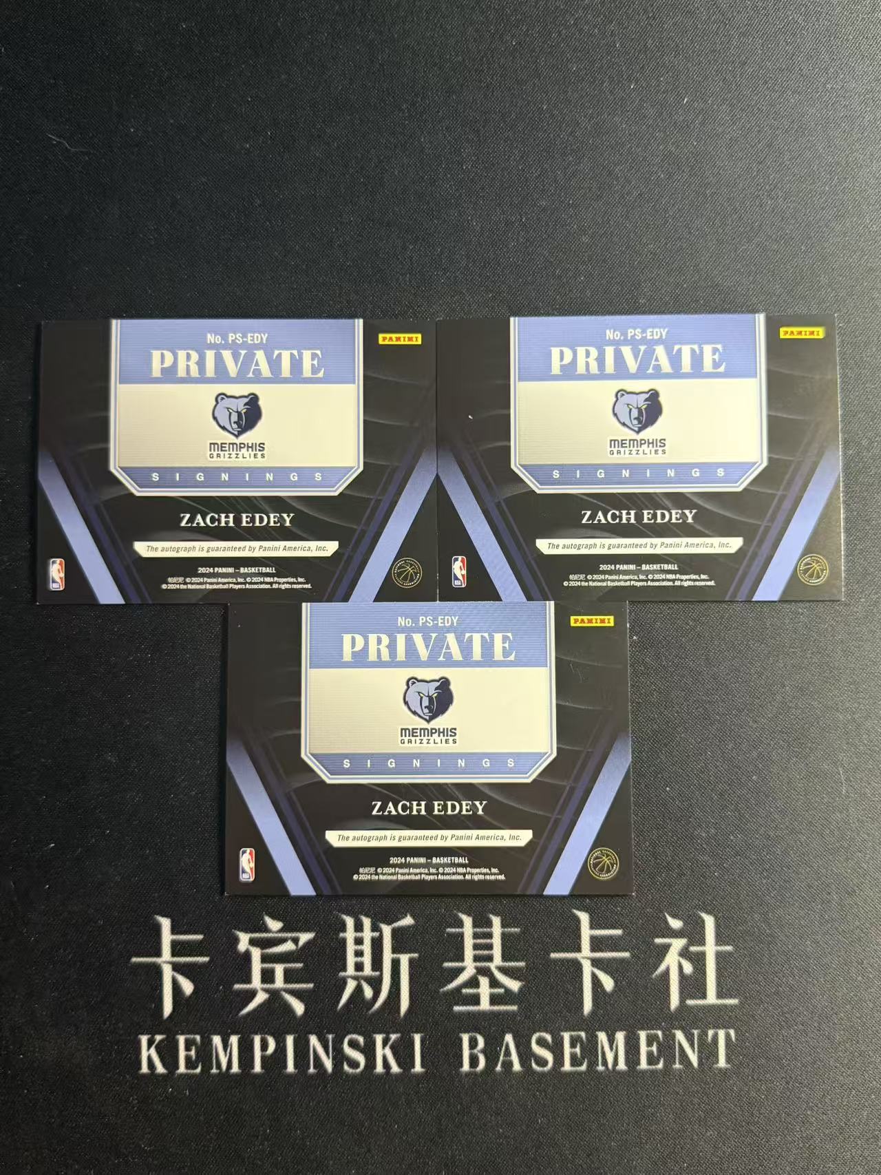 2024-25 Topps Noir Zach Edey RC 【卡宾】扎克 伊迪 周志豪 灰熊 莫兰特小弟 末年诺尔插入 私人订制签 卡签 不带编 3张LOT 专收凑套必备 土狗
