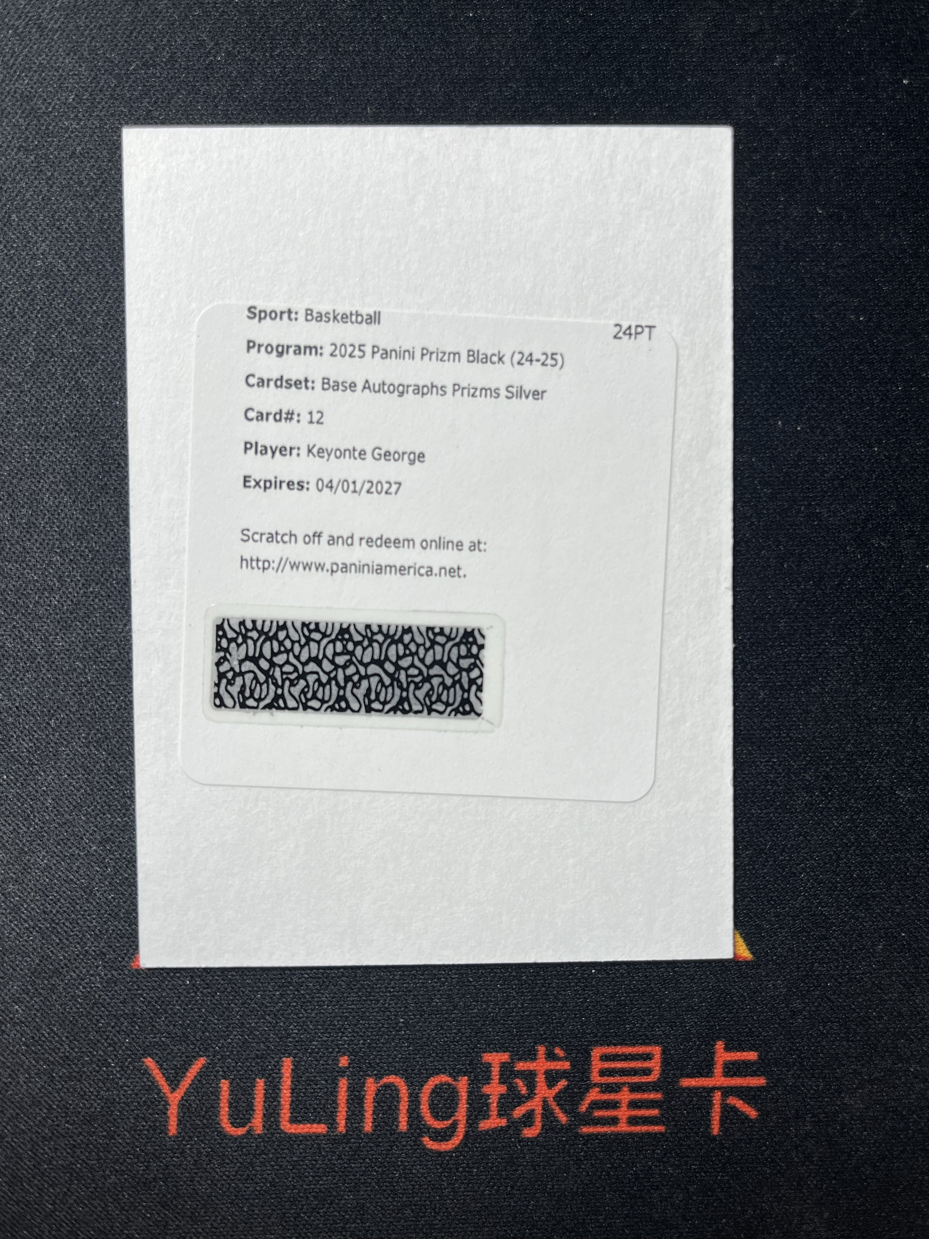 2024-25 Panini Prizm Keyonte George 【YuLing免手续费代卖】基昂特 乔治 猪猪侠 爵士 PZ black 签字 银折 交换板 只发板子 瑕疵如图 收藏必备 B