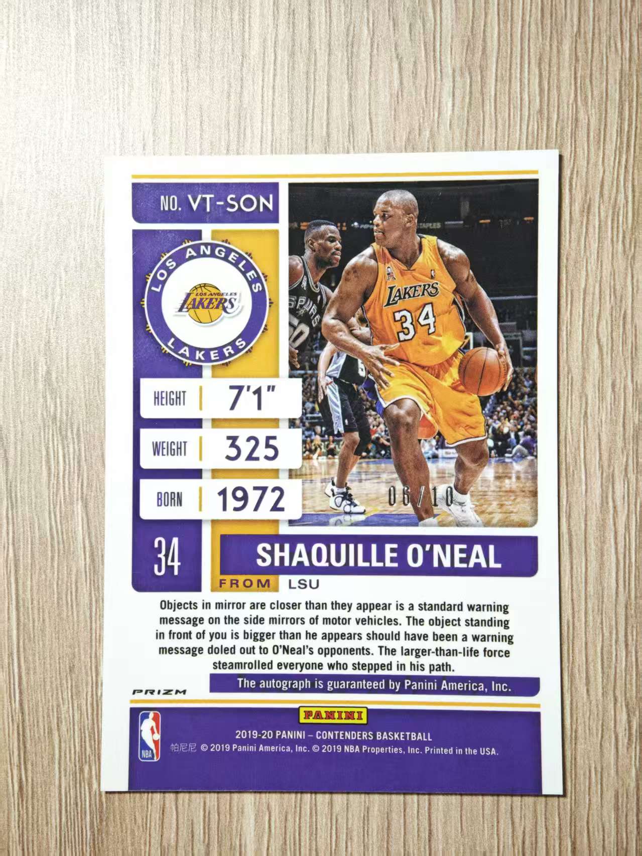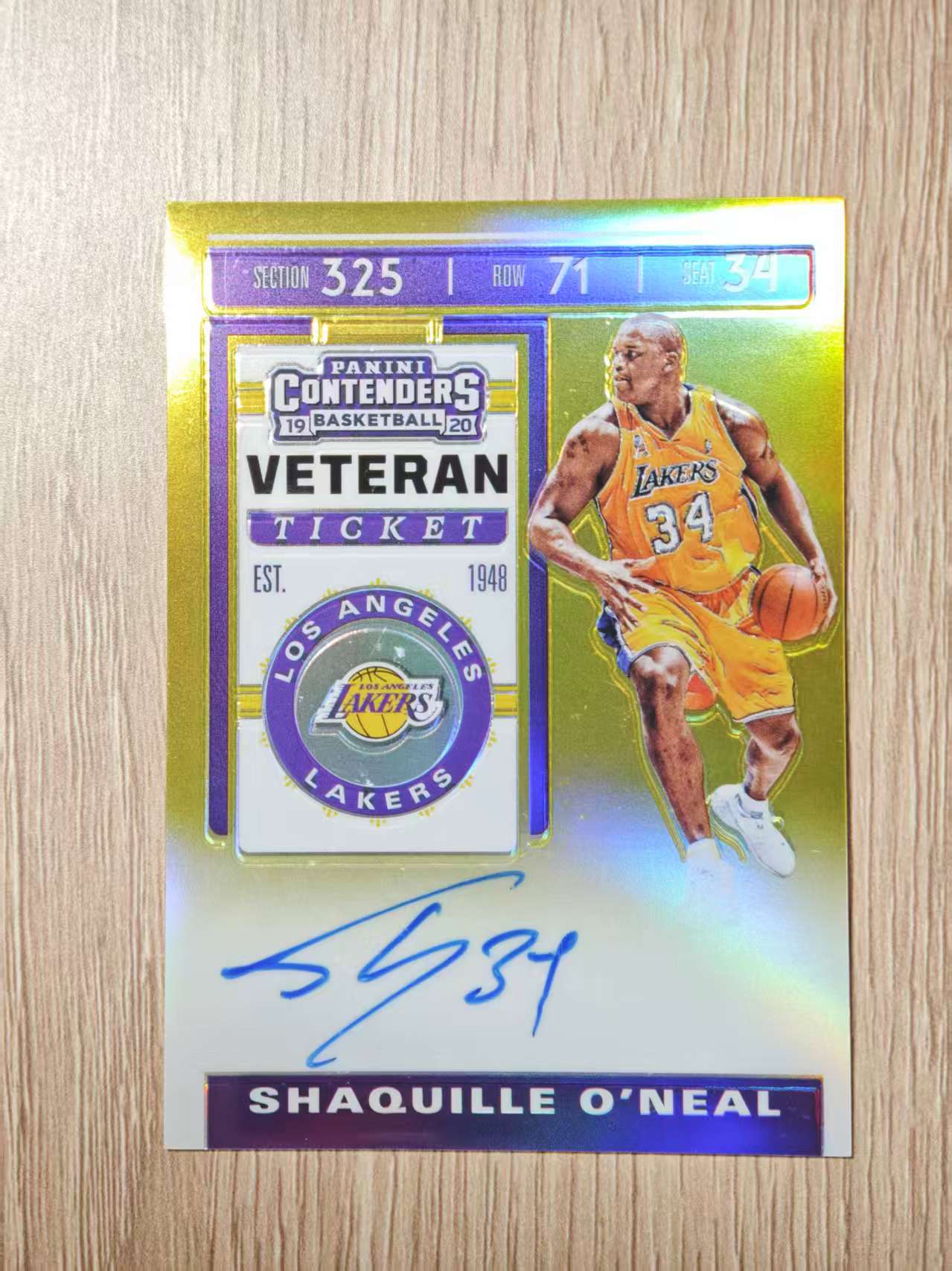 2019-20 Panini Contenders Shaquille O'Neal 球票OP 湖人传奇 大鲨鱼 奥尼尔 10编金折 签字 卡签!