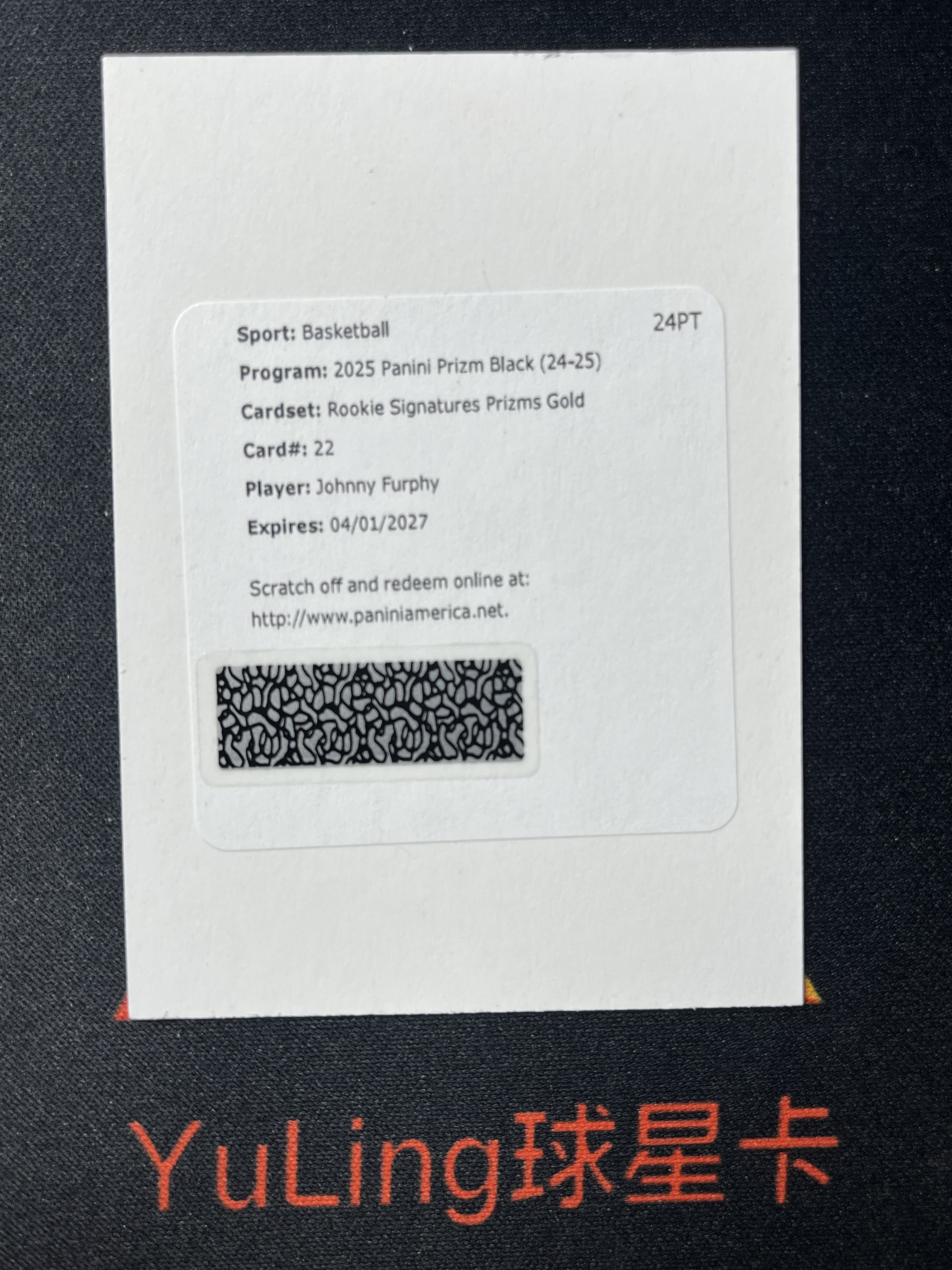 2024-25 Panini Prizm Johnny Furphy RC 【YuLing免手续费代卖】约翰尼 弗菲 步行者 新秀 PZ black 新秀签字 金折 10编 交换板只发板子 瑕疵如图B