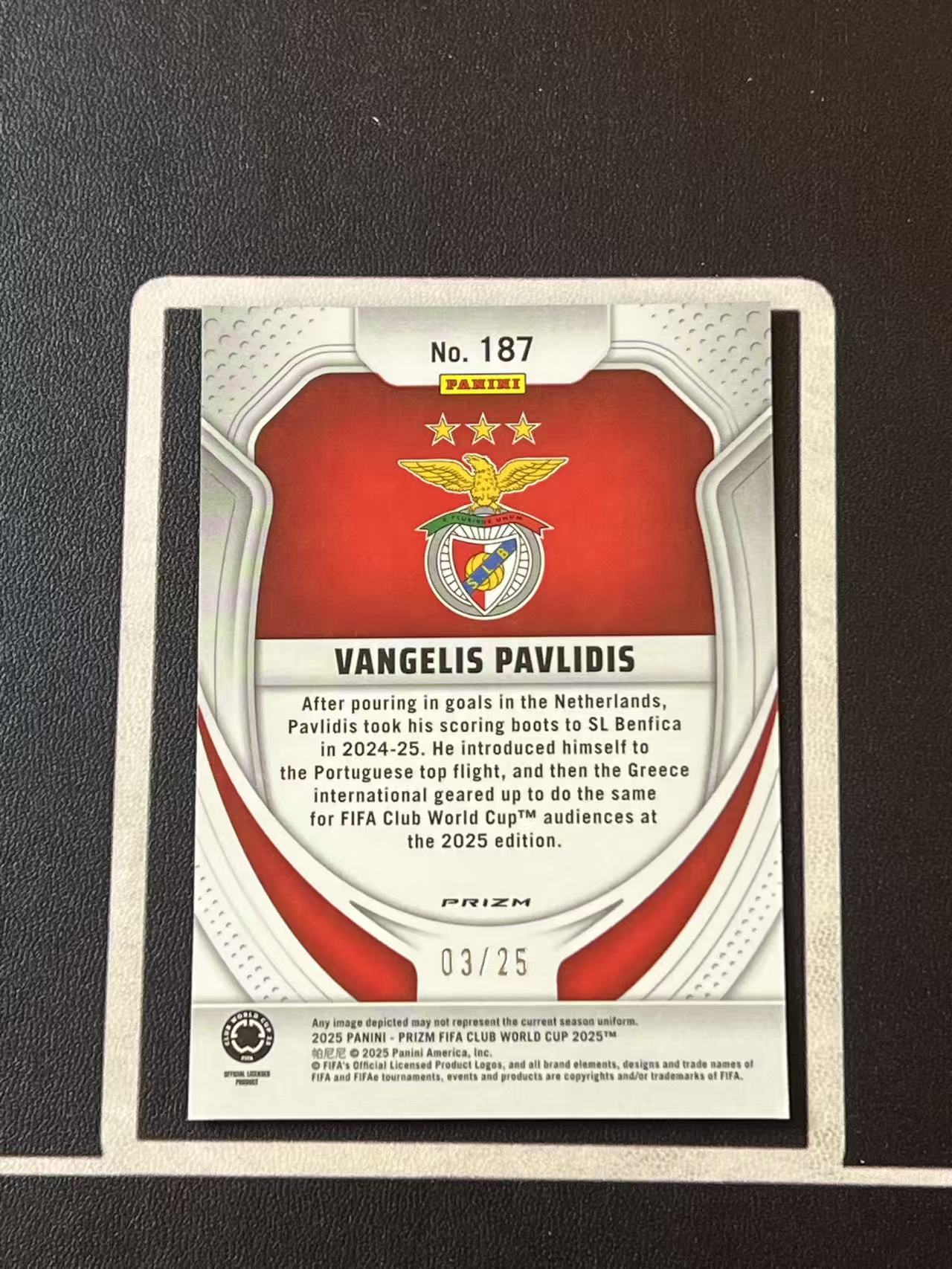 2025 Panini Prizm FIFA Club World Cup 世俱杯pz Pavlidis 万耶利斯 帕夫利季斯 本菲卡 RC新秀 25编 金Mojo折 卡品如图 浩哥