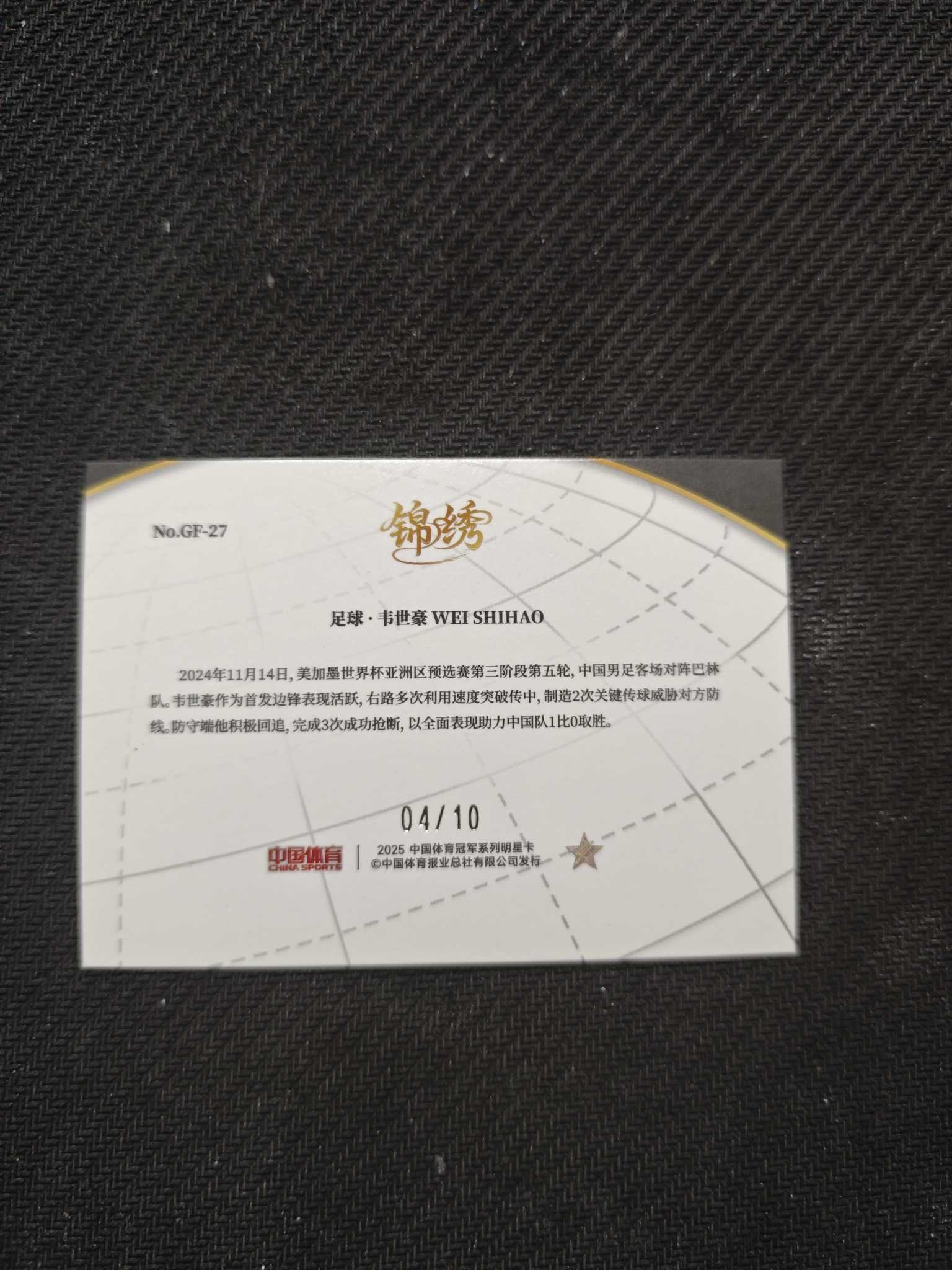 2024 中国体育 锦绣 韦世豪 04/10 十遍 足球 中国体育 品相如图 绫罗绸缎