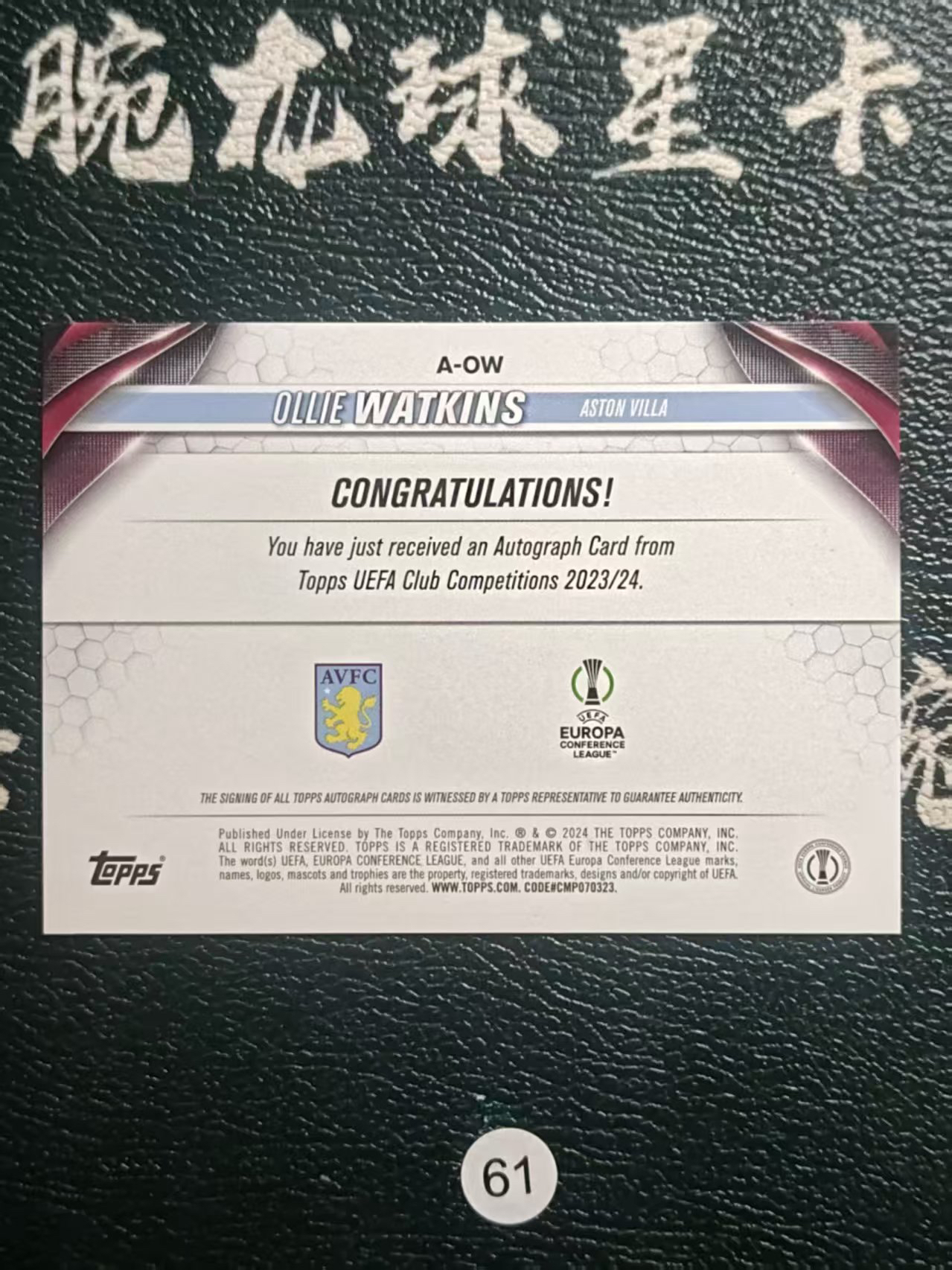 2024 【腕龙拍卖 接代卖】 腕龙茹泽群AN4 Topps Ucc 欧冠 欧战 沃特金斯 阿斯顿维拉 银折签 签字 OLLIE WATKINS 卡品如图 收藏必备