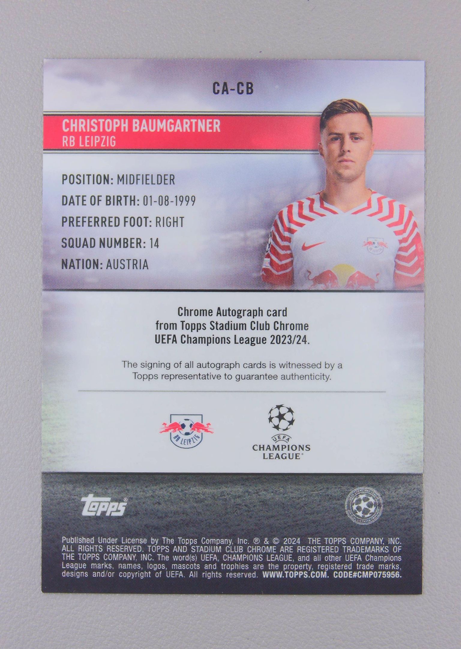 2024 Topps stadium club Christoph Baumgartner 克里斯托夫 鲍姆加特纳 签字 银折 欧冠 莱比锡红牛 竞技场 战神无双拍卡 (懒洋洋大王)